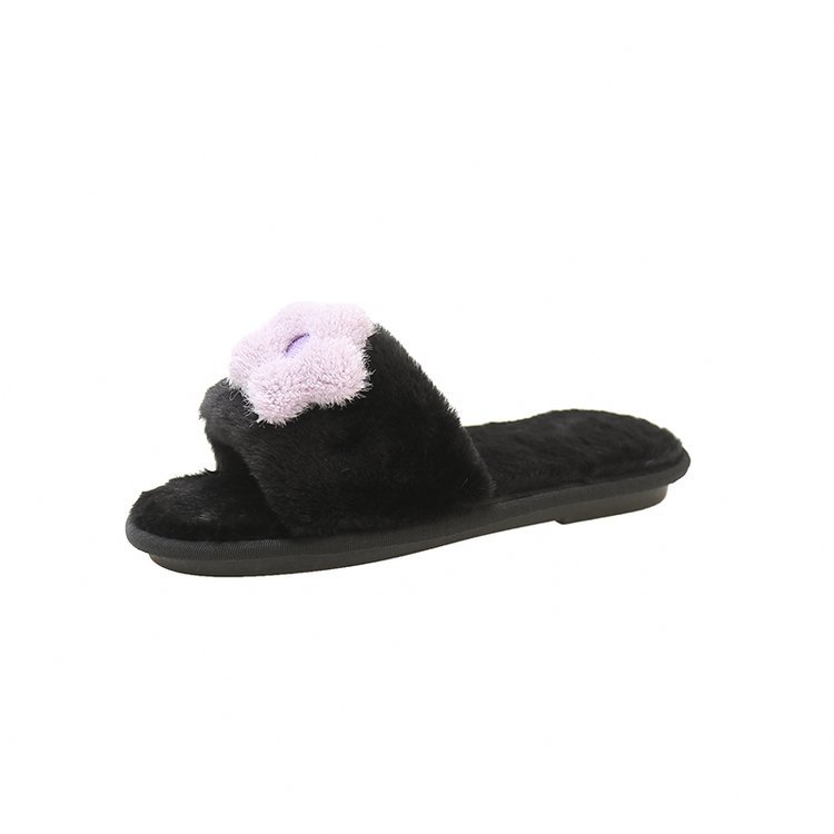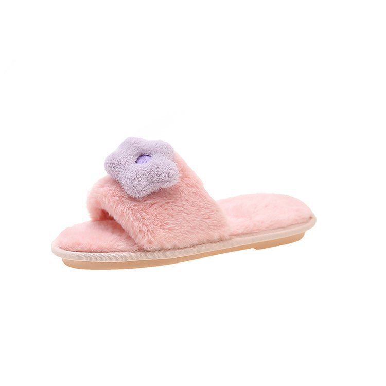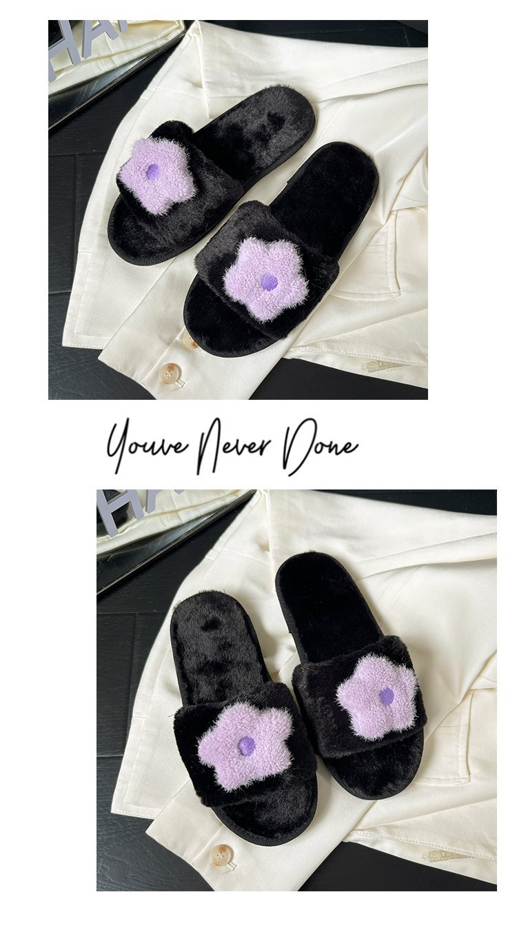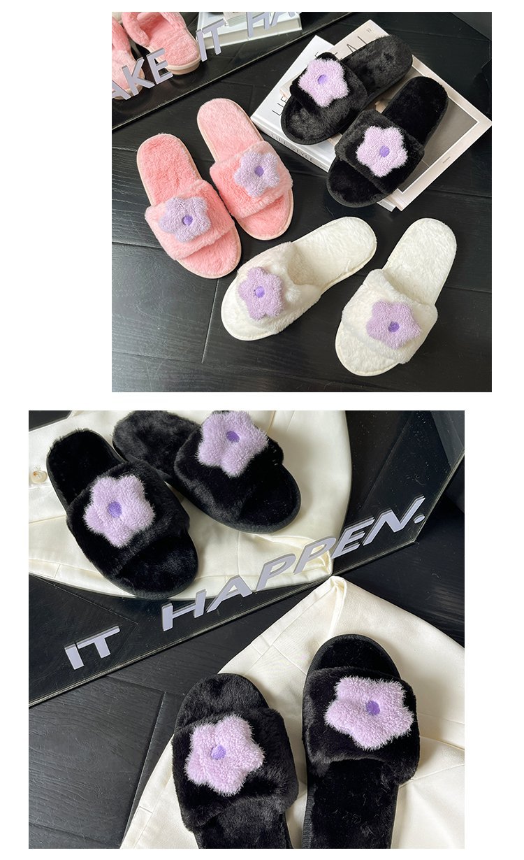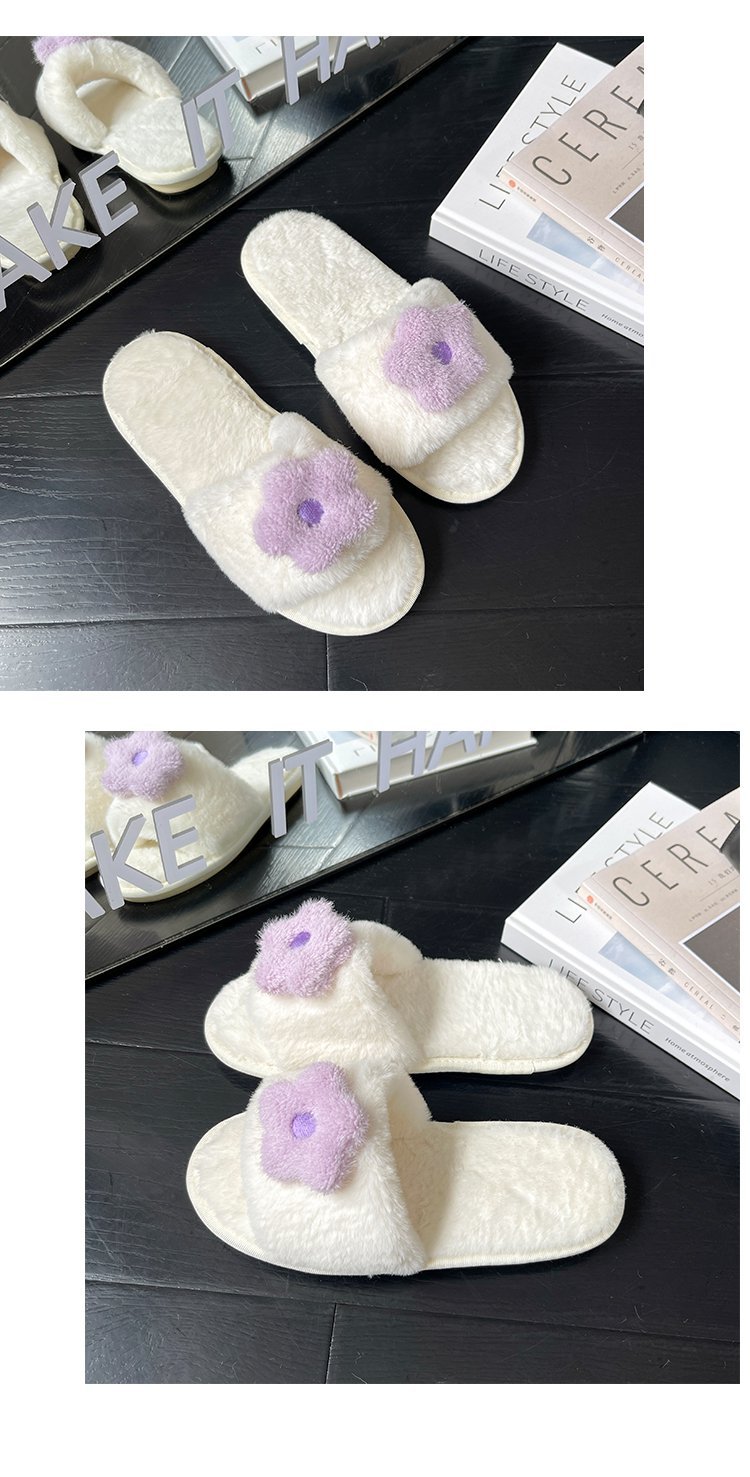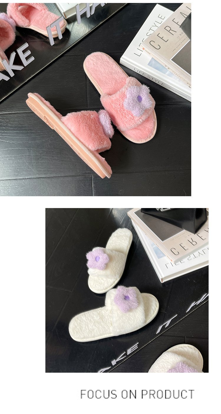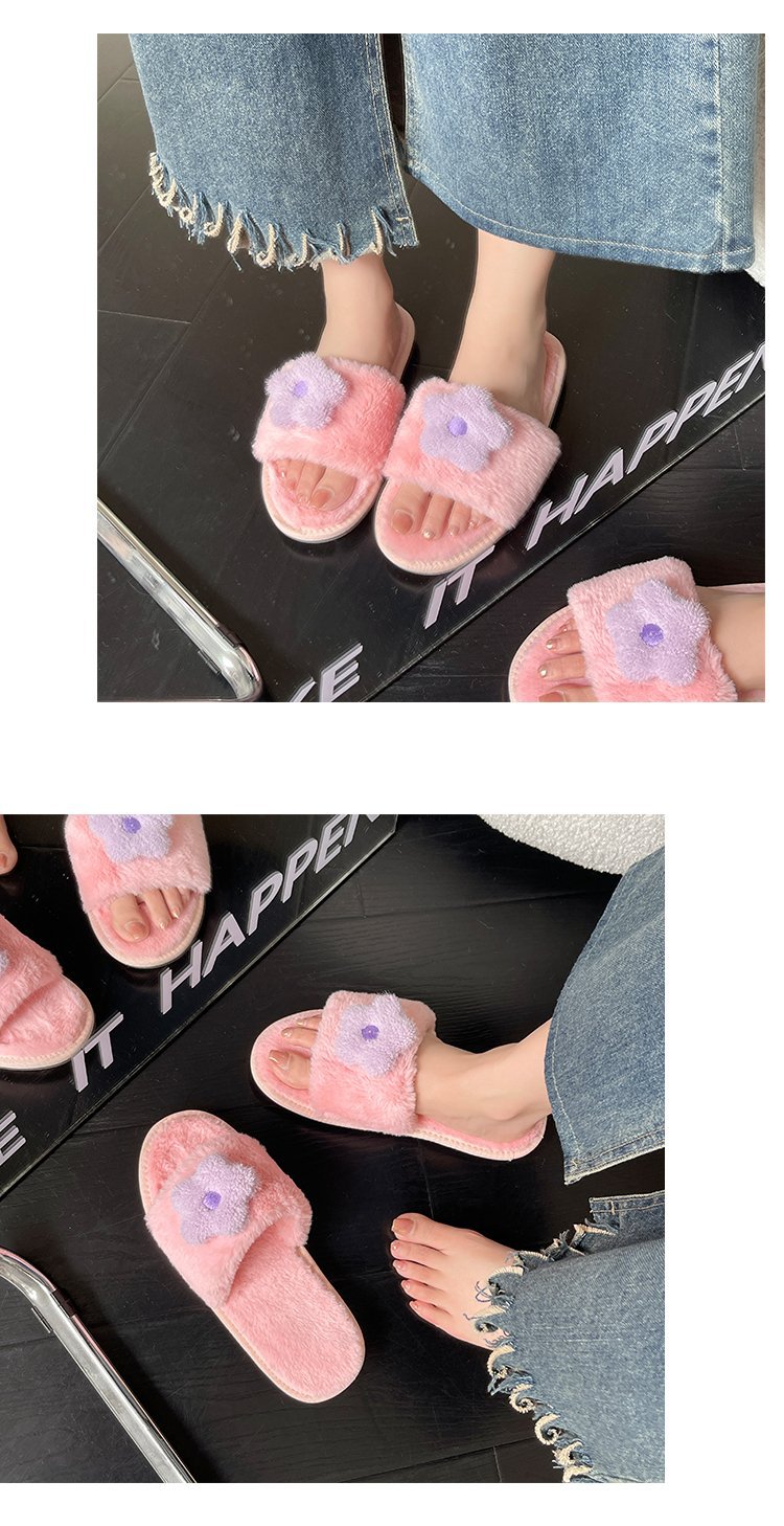 Легкие нескользящие повседневные тапочки-слипоны на осень-зиму 2025 года для дома и улицы с цветочным меховым дизайном