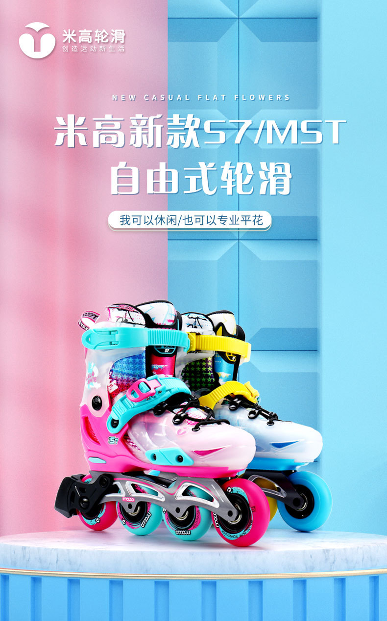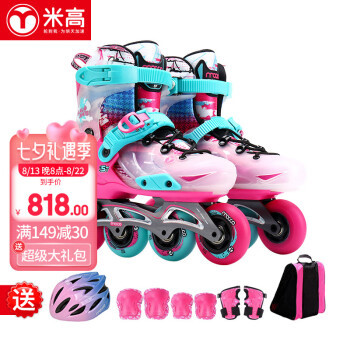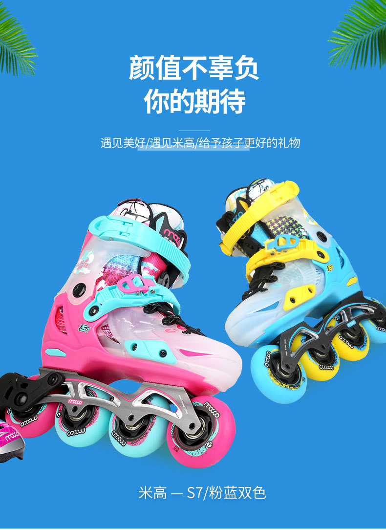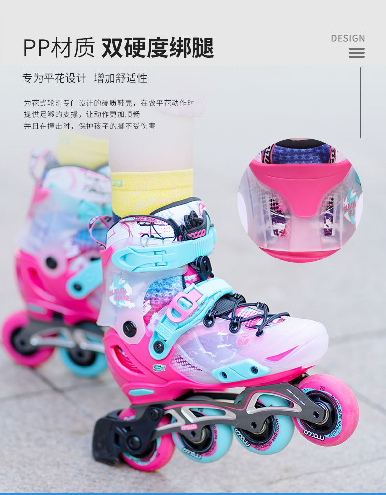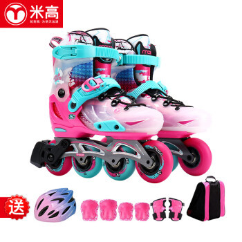 Коньки детские роликовые коньки мужские и женские туфли на плоской подошве полный костюм роликовые коньки регулируемые роликовые колеса S7 розовый костюм M