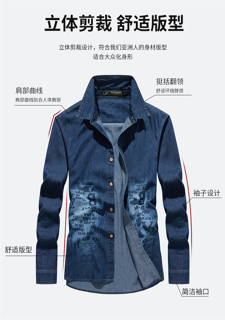 Джинсовая рубашка из чистого хлопка, Мужская модная универсальная мужская рубашка для спецодежды высокого класса с длинными рукавами, японская повседневная куртка