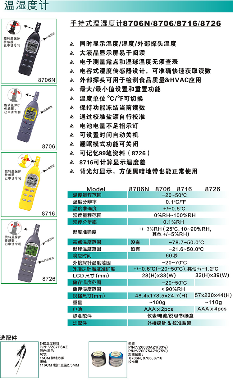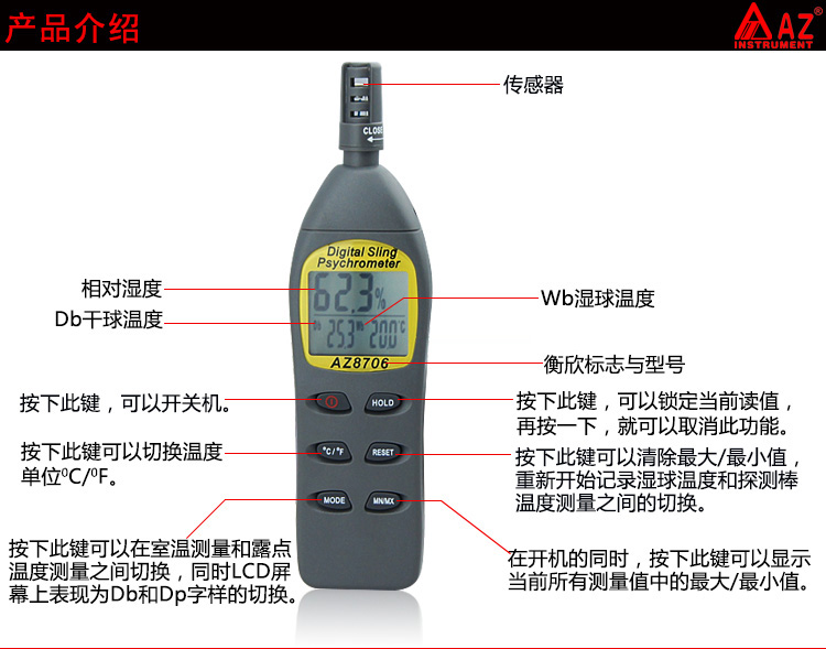 Гигрометр AZ8716/AZ8726 Тайваня Hengxin AZ8706 температура термометра влажного шарика точки росы и измеритель конденсации влажности