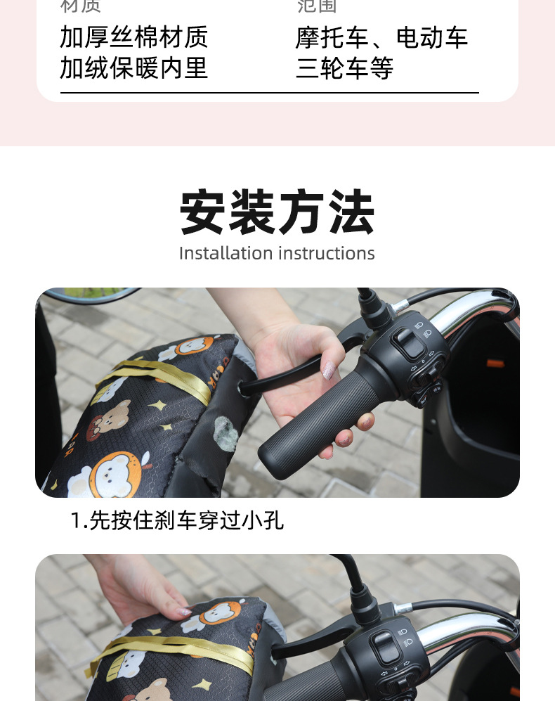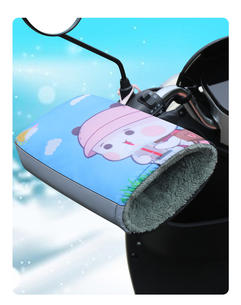Зимние перчатки для электромобиля на флисовой подкладке, утолщенный термоаккумулятор, накладка на ручку для езды на мотоцикле, очень большая накладка на ручку лобового стекла
