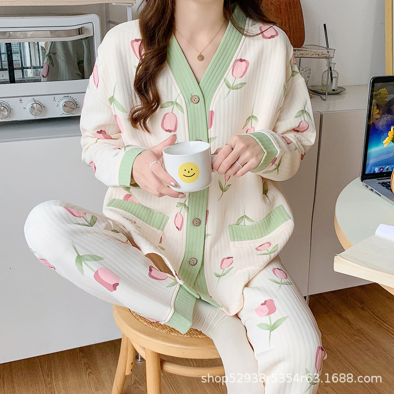 Воздушный слой месячная одежда осень и зима послеродовой месяц сидения сентябрь-декабрь весна и осень хлопок кормление грудью Беременные женщины пижамы Женщины