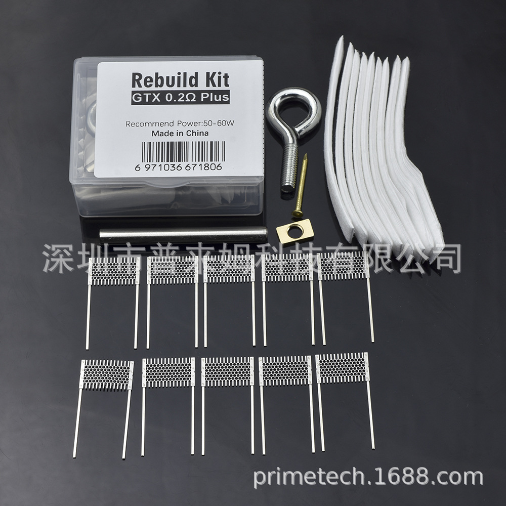 GTX0.2plus: 10个发热丝 9条5层L棉片,四合一工具