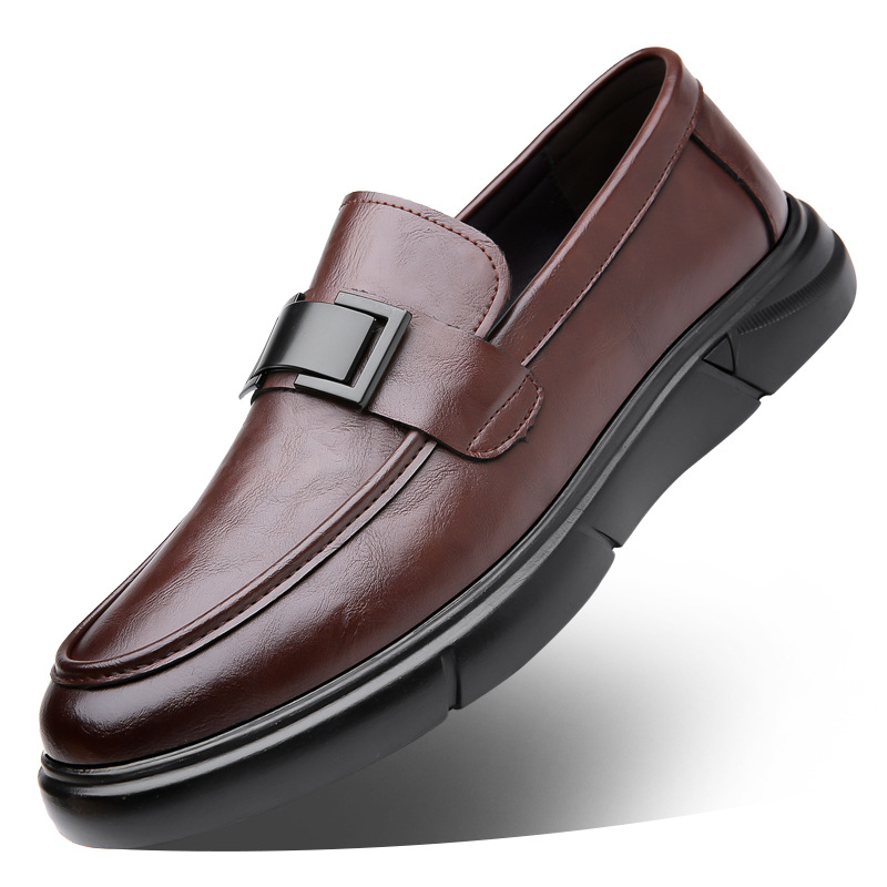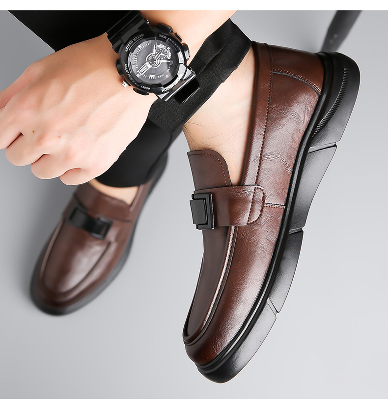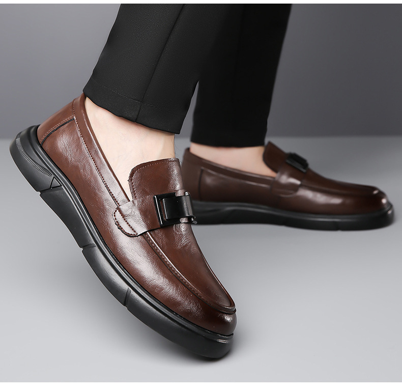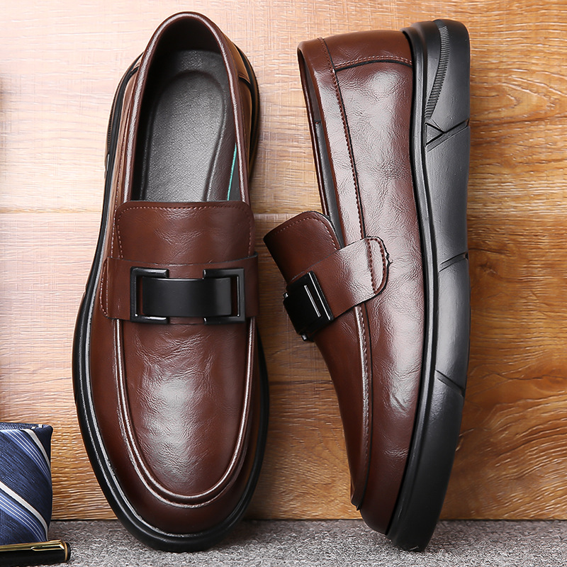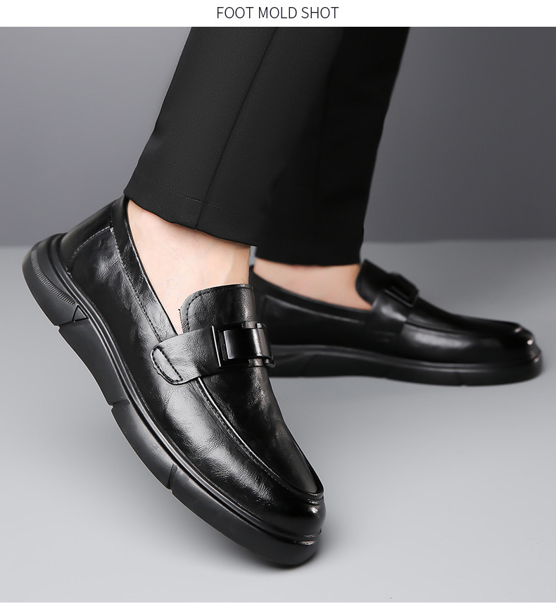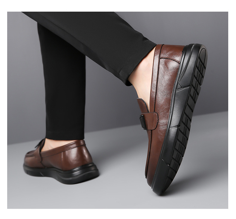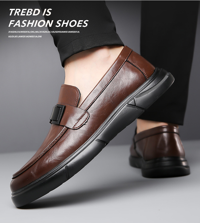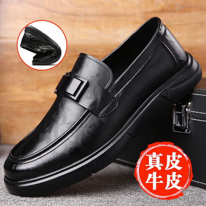 Кожаная обувь Мужская натуральная кожа 2023 Осенняя Новая повседневная обувь Doug Мужские деловые Лоферы без шнуровки с мягкой подошвой, универсальные