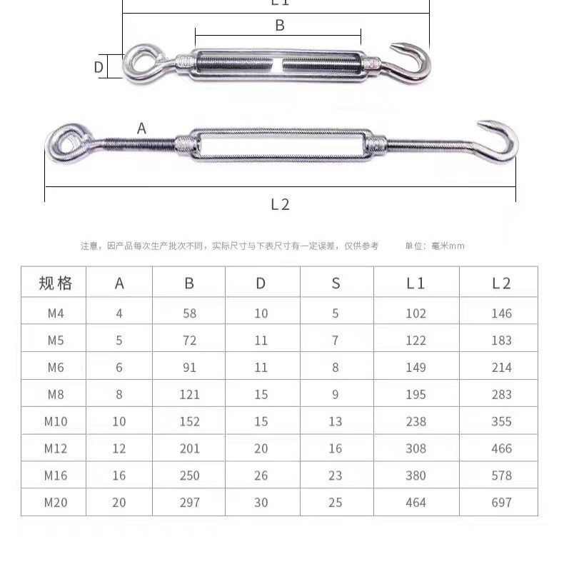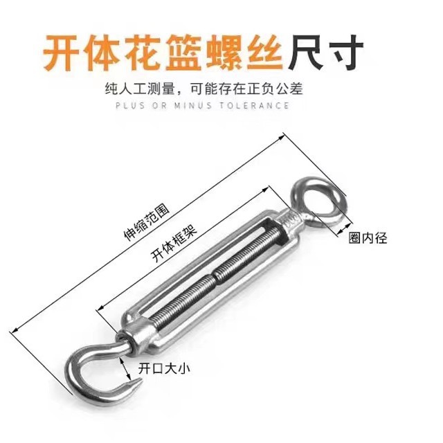 Талреп из нержавеющей стали 304, натяжитель троса, кованый талреп с открытым корпусом, болт для натяжения проволоки
