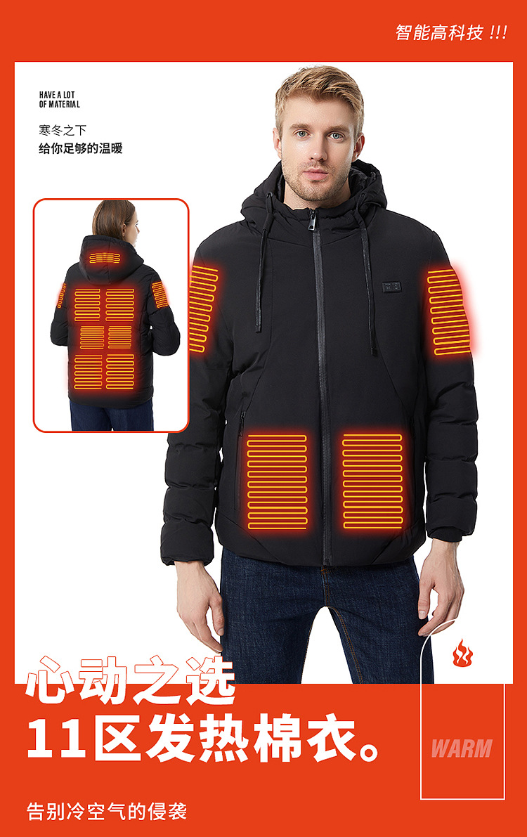 Зимняя Новая интеллектуальная хлопковая одежда с подогревом USB-зарядка с двойным управлением 11 зон интеллектуальная хлопковая одежда с подогревом