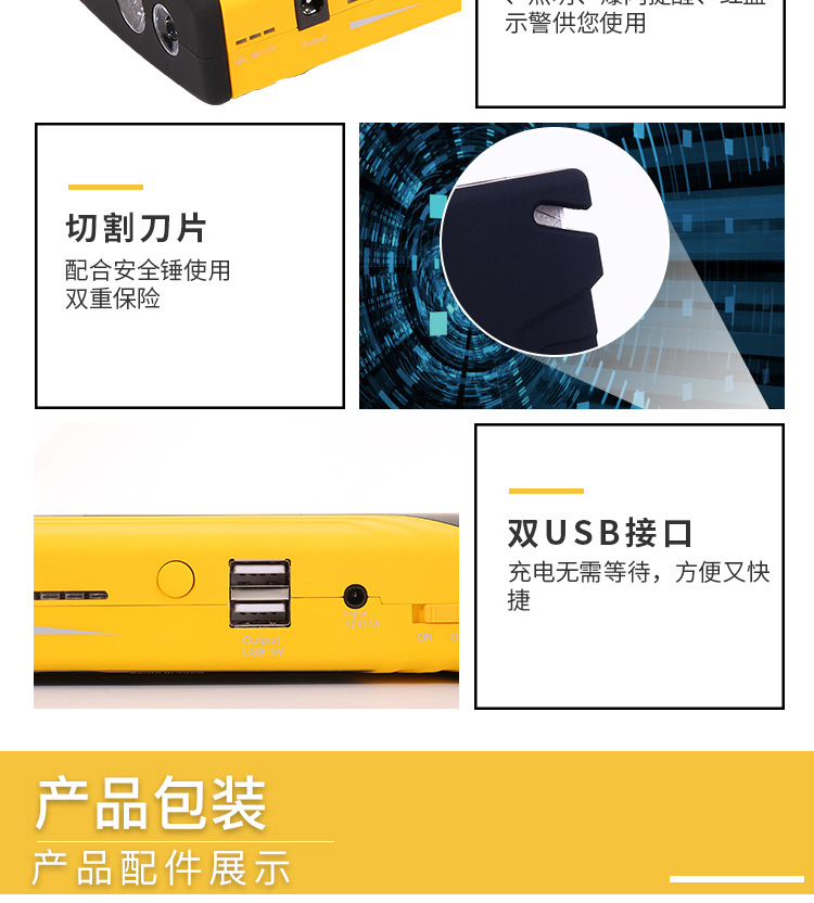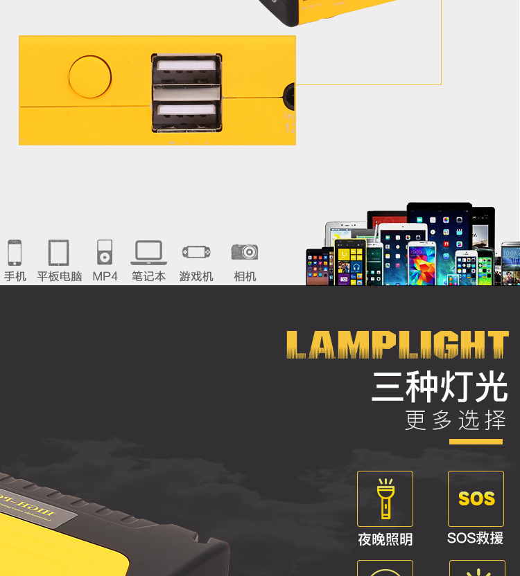 Автомобильный пусковой прибор 12В, пусковое устройство для автомобильного аккумулятора, аварийный источник питания, пусковой прибор