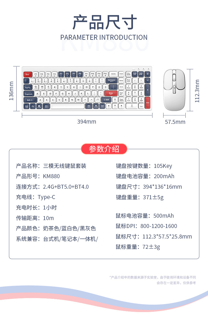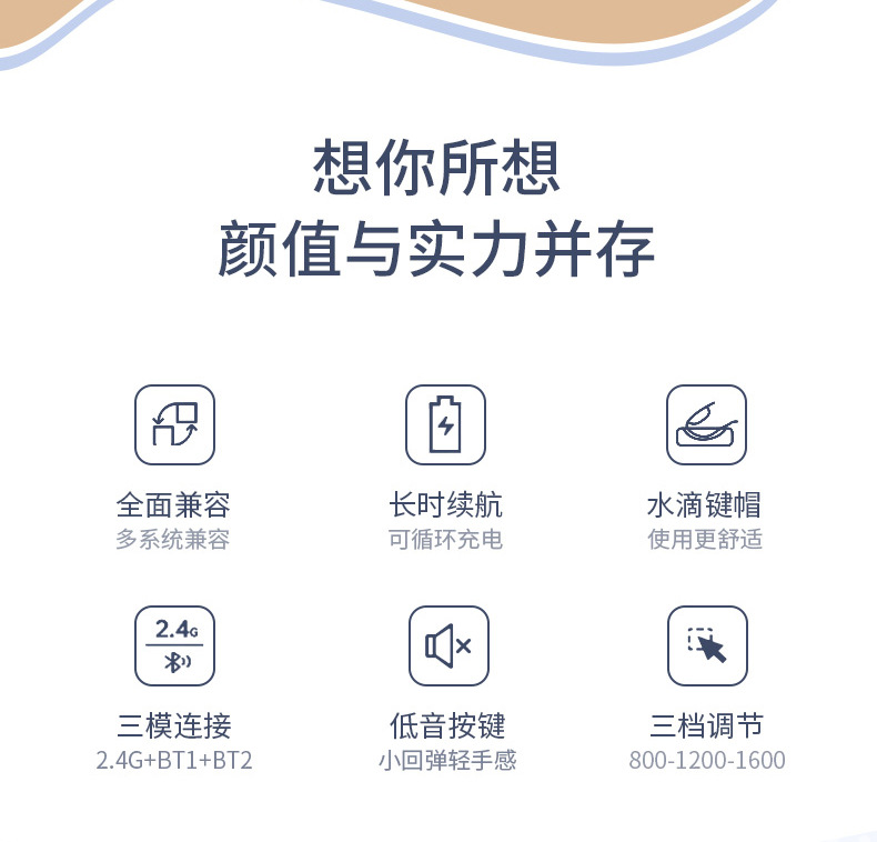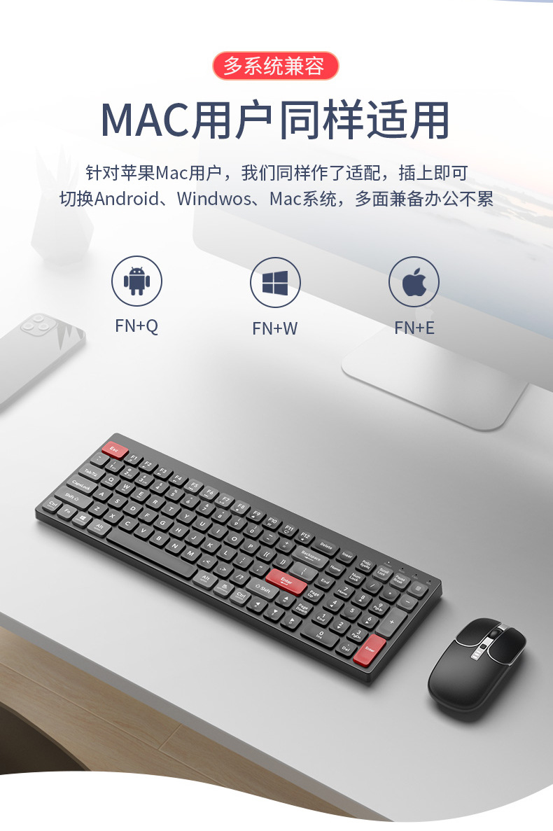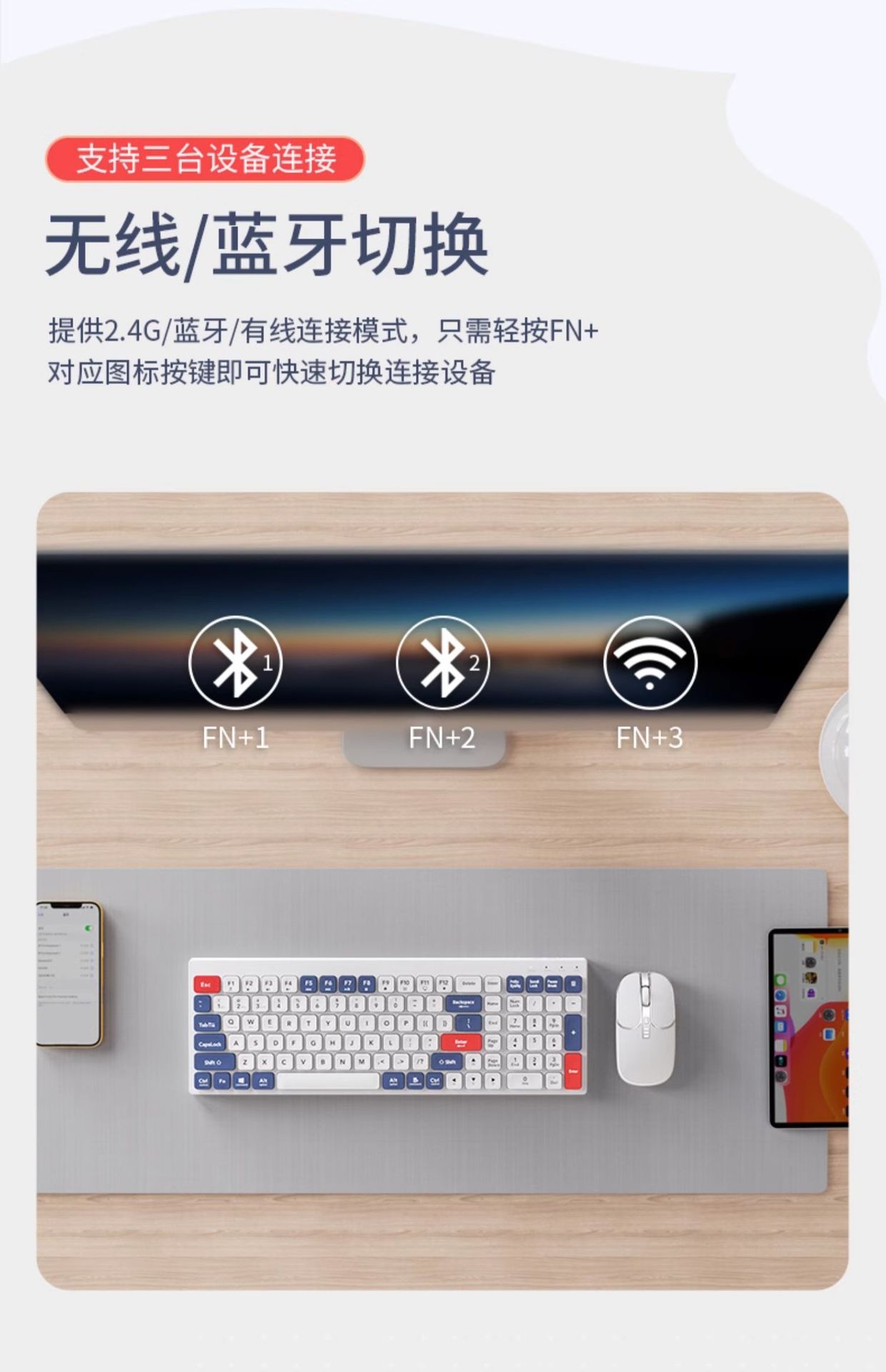 产品为:蓝牙+2.4G双模充电键盘+鼠标套装