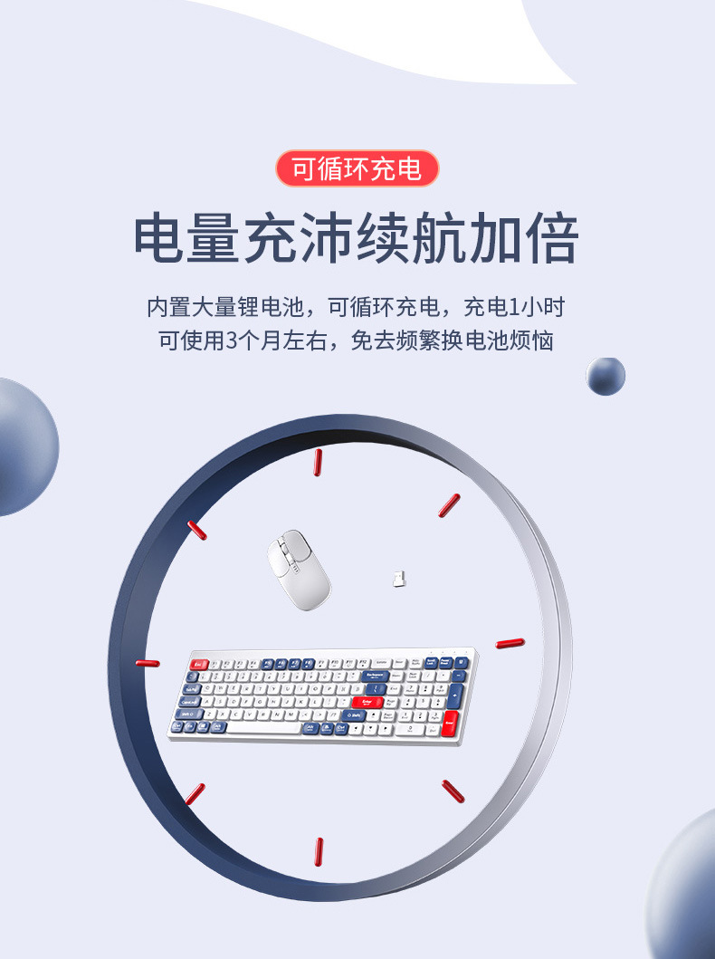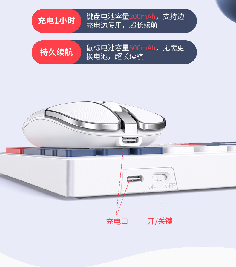 键盘内置200MA锂电池,鼠标内置400MA锂电池