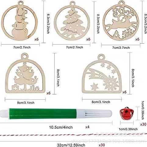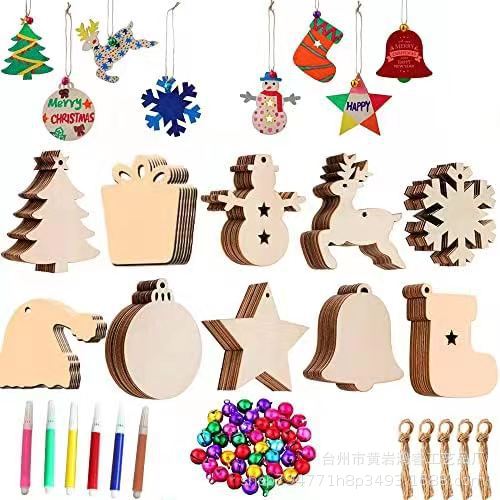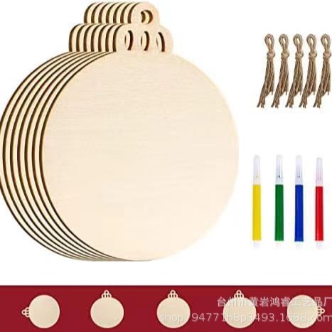 Деревянные рождественские украшения Деревянные круги для ремесленного центра украшения Рождественские подвески трансграничные поставки
