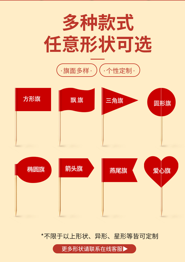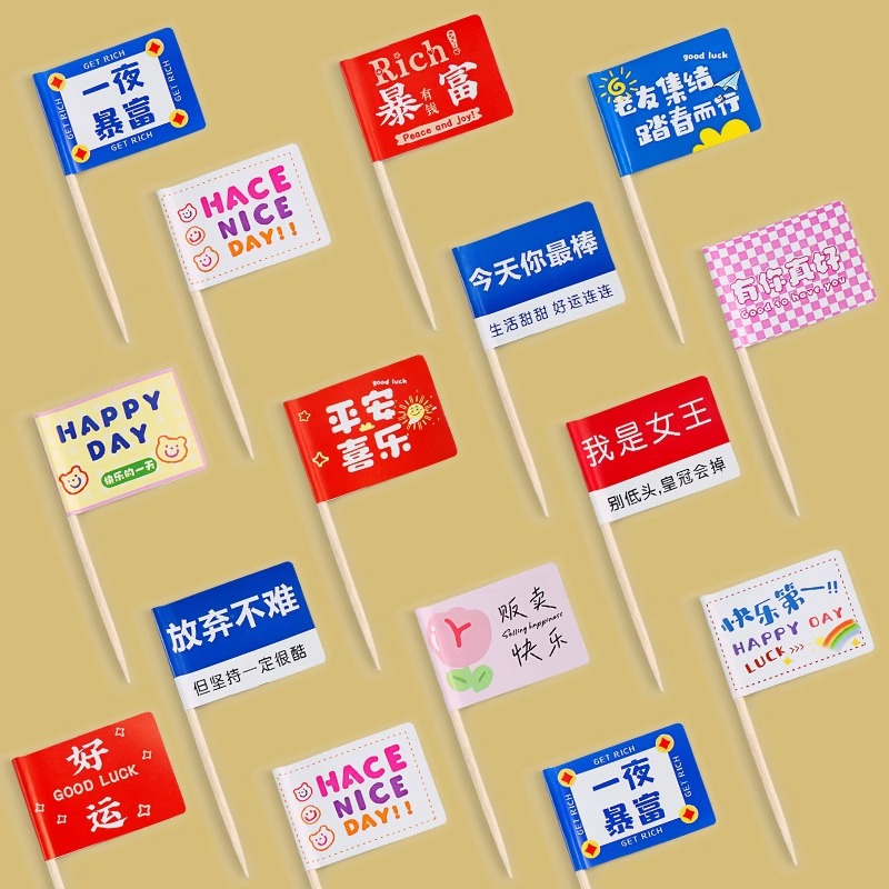 Флажки-зубочистки на заказ [Свяжитесь с клиентской службой 10% off *Различные формы и размеры*Бесплатный дизайн]; Смешанный набор [10 случайных стилей] — стандартная версия — 500 штук; Street Sign Mix II [6 случайных комбинаций] — универсальная версия — 500 штук; Версия «Креветки-500 штук»; Горячая еда в виде щипцов, версия-500 штук; Говядина свежескошенная, цельная версия - 500 шт.; Фирменная версия Tong, обязательная для заказа - 500 штук.; Давайте поесте Тонгбань-500 штук; Сегодня вы лучшие благодаря версии 500 штук.; Мир и радость в версии-500 штук; Насыпьте богатство за ночь – 500 штук; Счастливые продажи — Общая версия — 500 единиц; Отказаться несложно – 500 штук.; Happy Day — стандартное издание — 500 штук; Счастливое Первое Издание - 500 штук; Старые друзья собираются через версию-500 штук; Рады приветствовать вас, Tongban-500 штук.