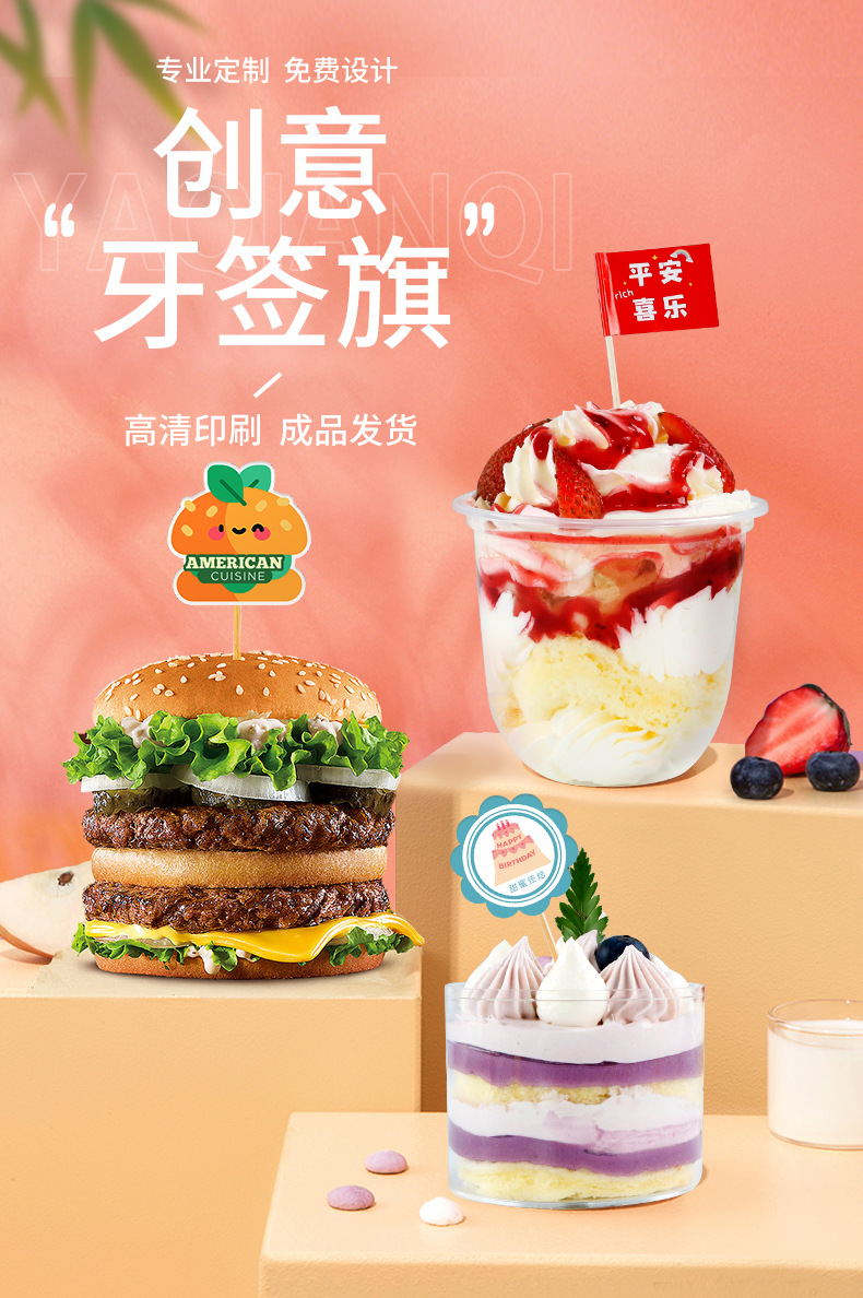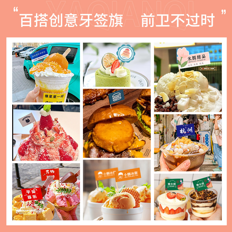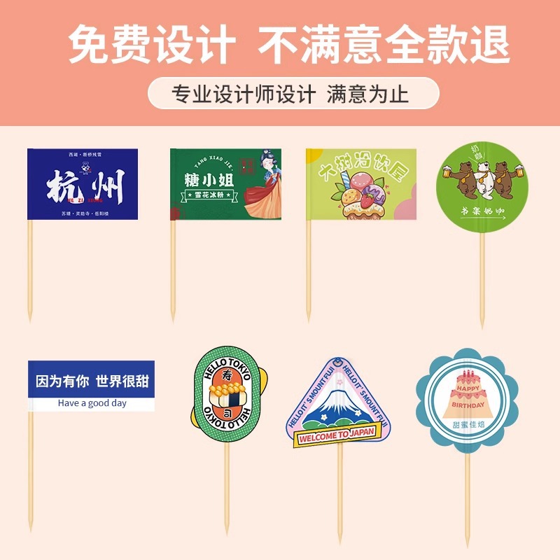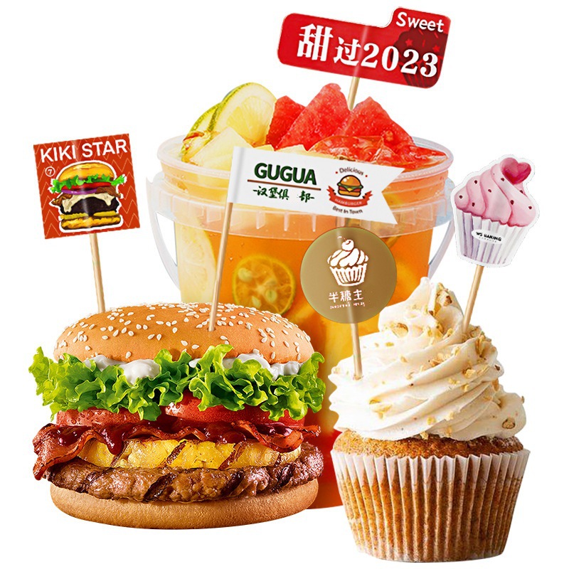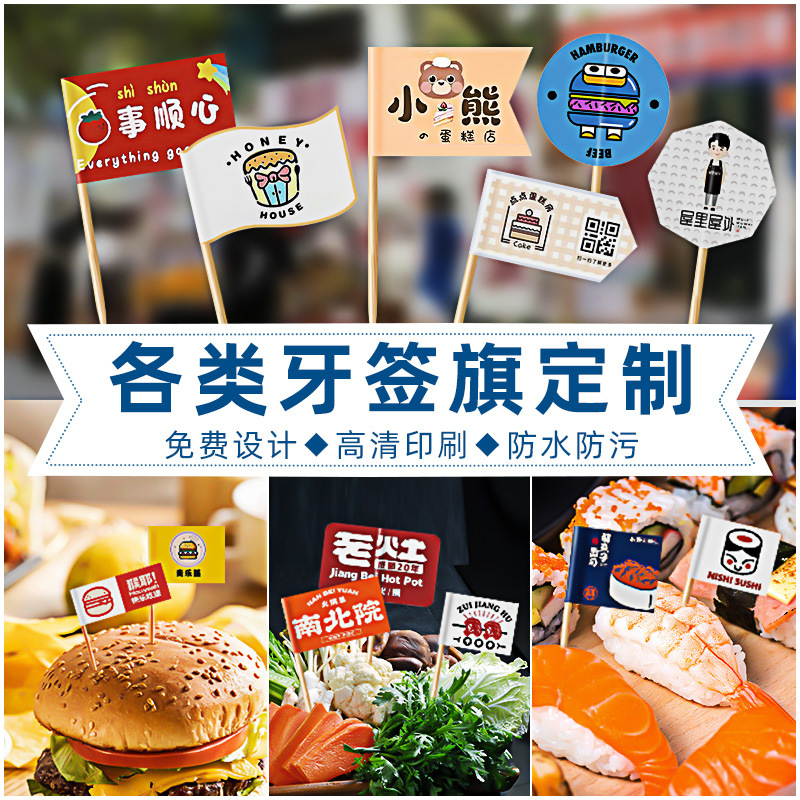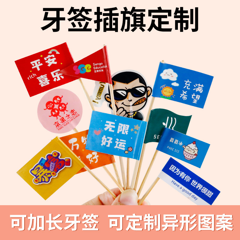 Флаги для зубочисток с индивидуальным логотипом для блюд, бургеров, тортов, десертов из ледяного желе, модные флаги для зубочисток.