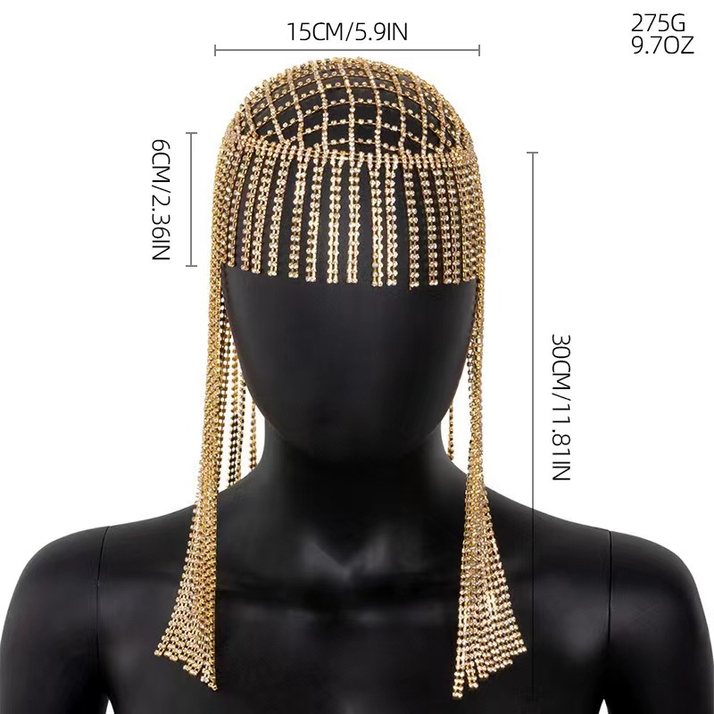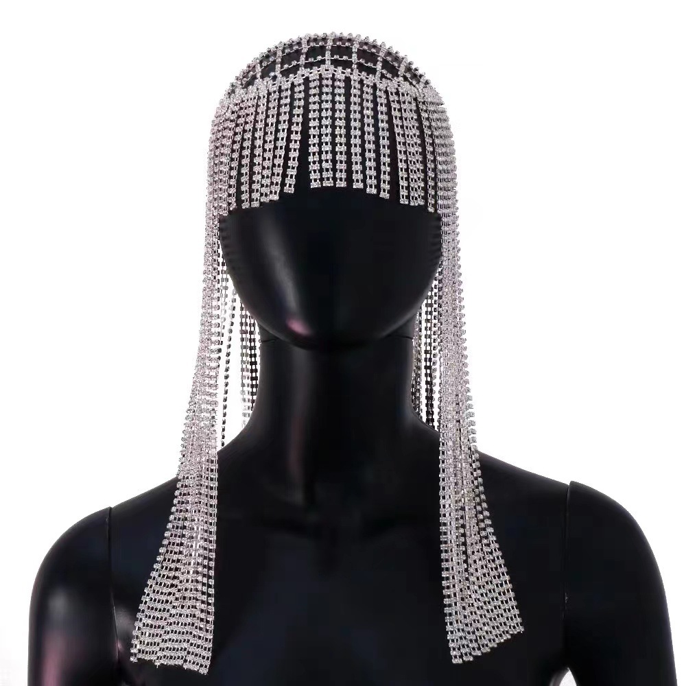 Трансграничные аксессуары для волос, преувеличенные стразы, длинные кисточки, головные уборы, панк-цепочка для волос, ночное шоу Headdress