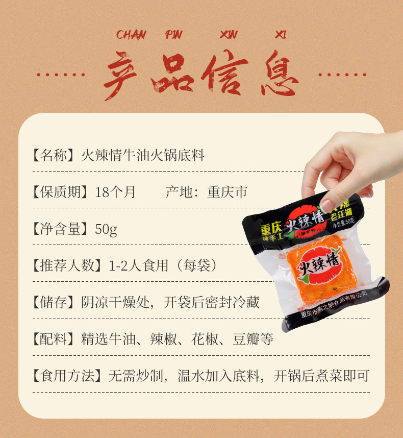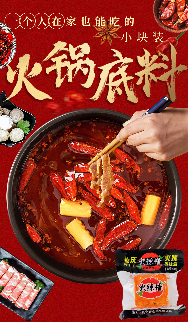 Горячий Чунцин Горячий горшок Базовый материал Один человек Отдельный небольшой пакет масла Пряные бытовые приправы оптом