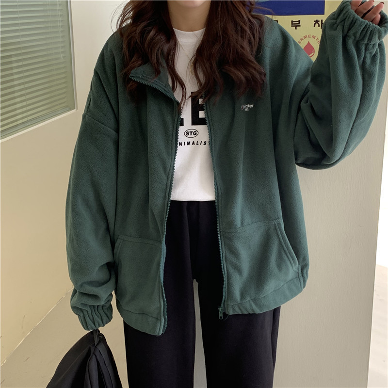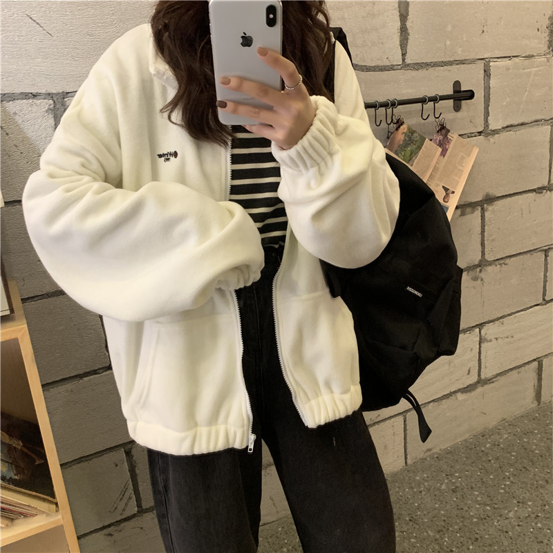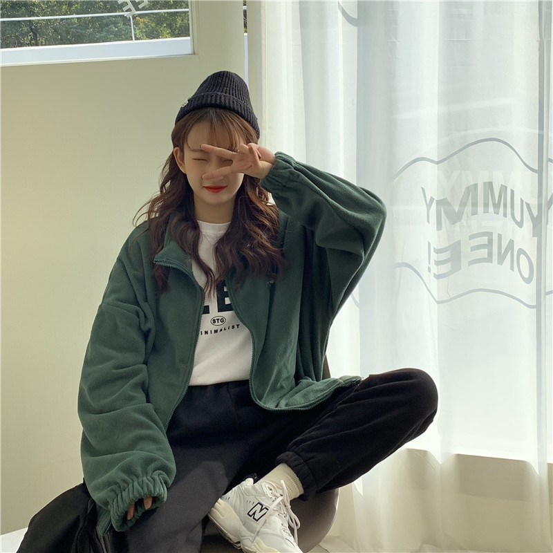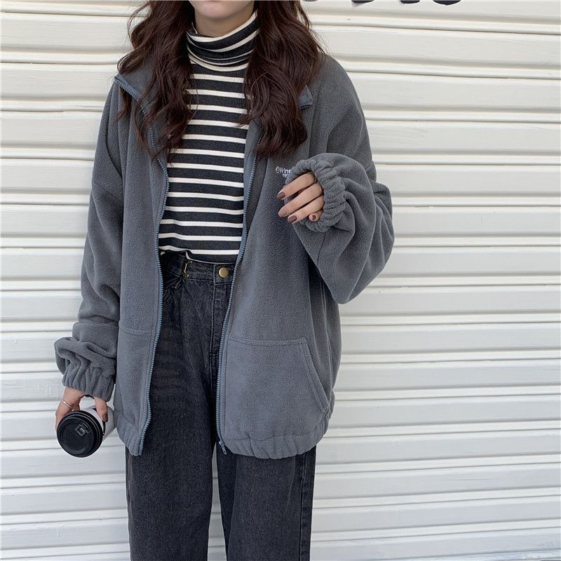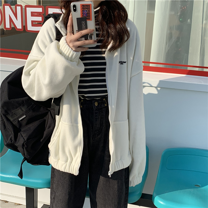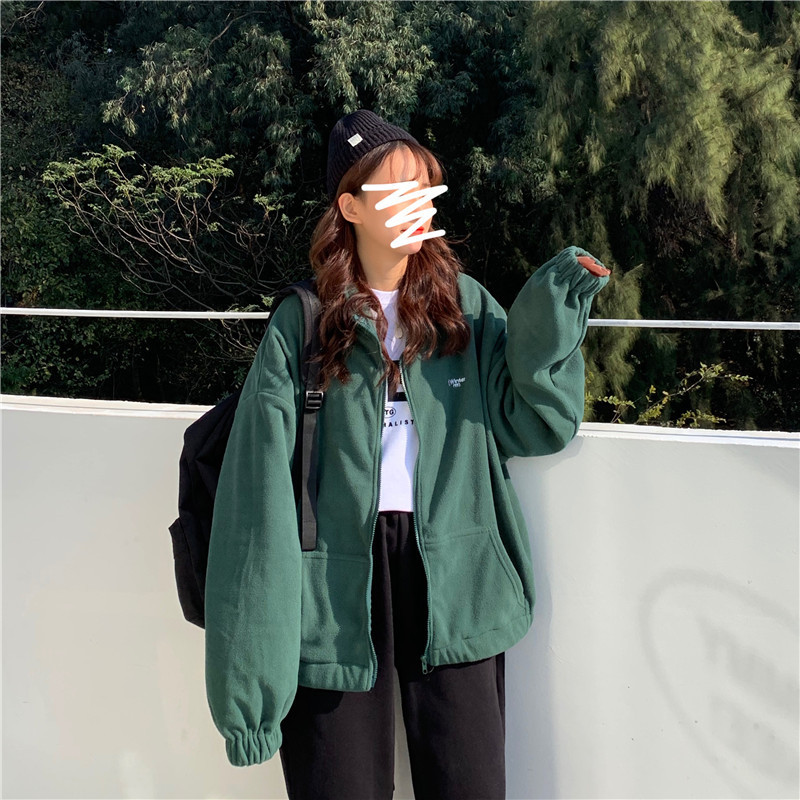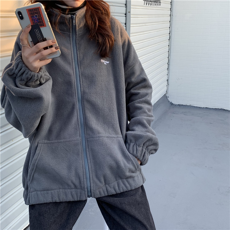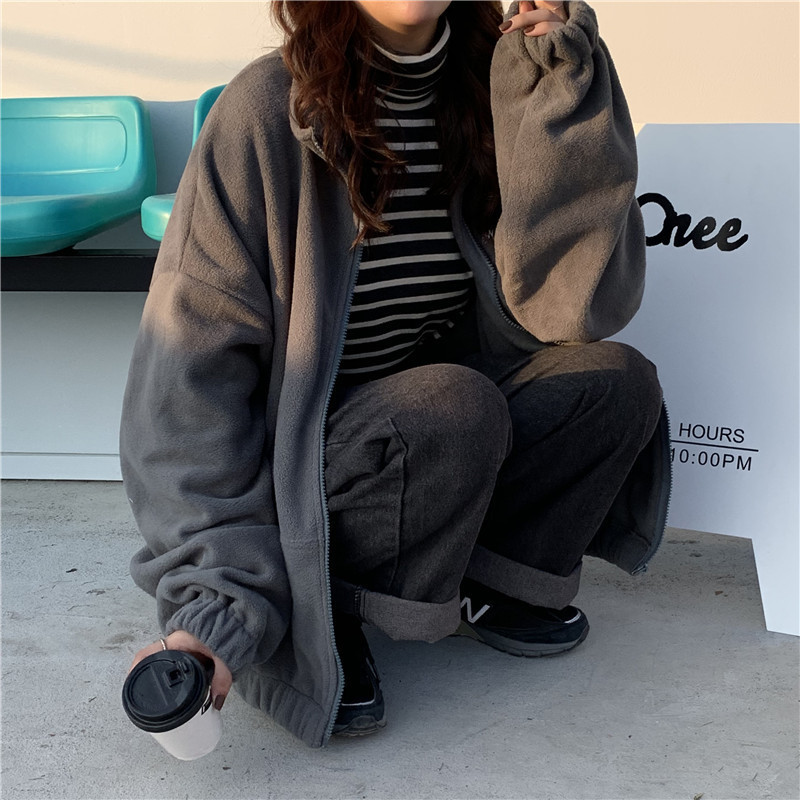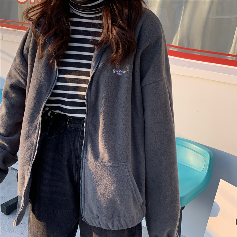Утепленный свитер на флисовой подкладке, женский свободный флисовый кардиган на молнии в Корейском стиле с длинными рукавами для студентов, модный флисовый кардиган в Корейском стиле