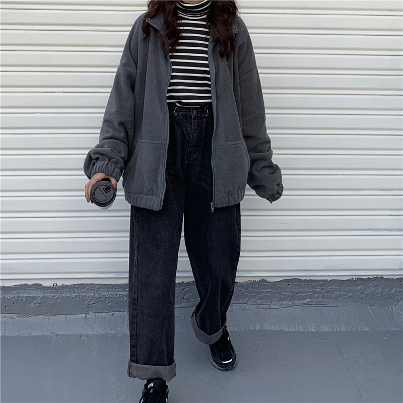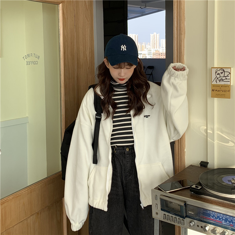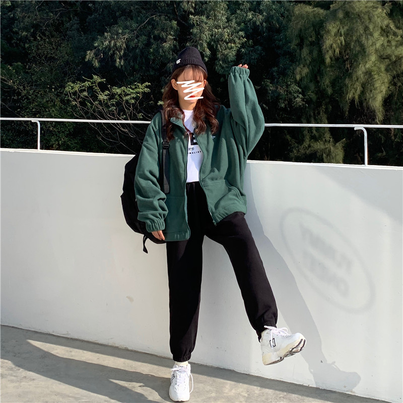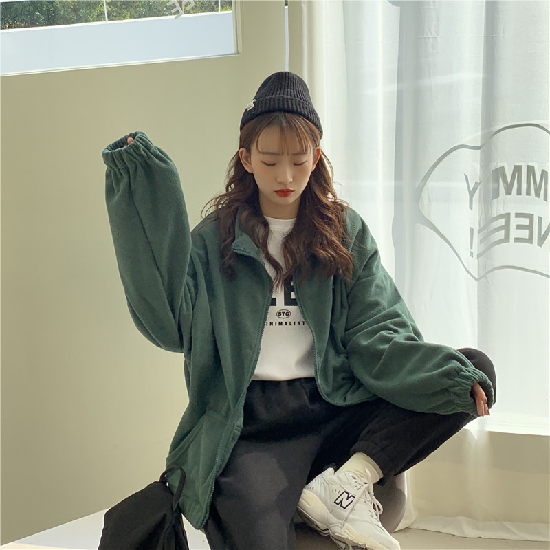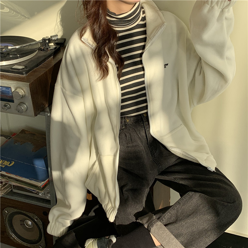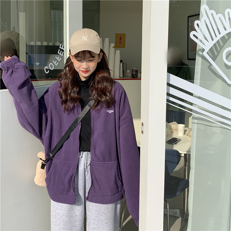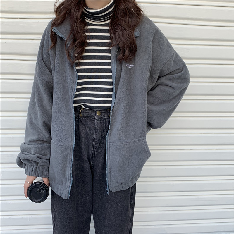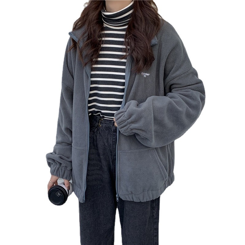 Утепленный свитер на флисовой подкладке, женский свободный флисовый кардиган на молнии в Корейском стиле с длинными рукавами для студентов, модный флисовый кардиган в Корейском стиле