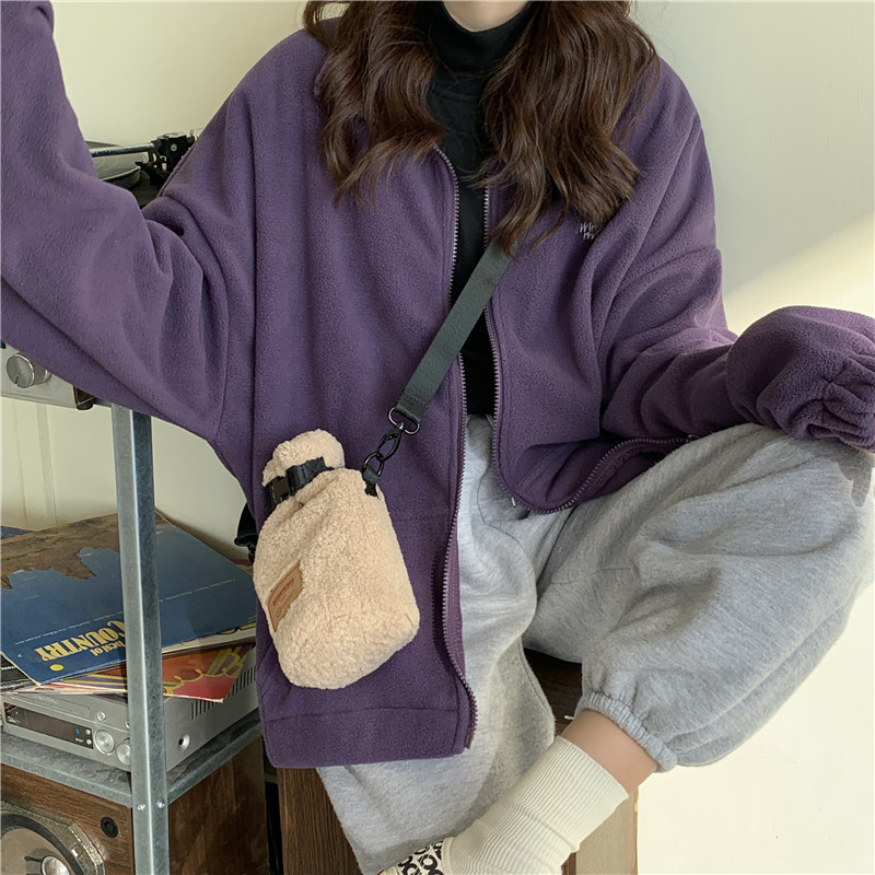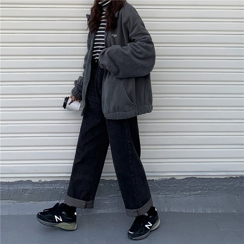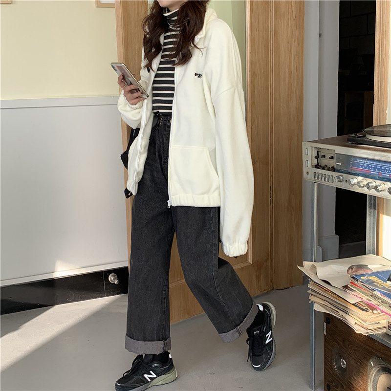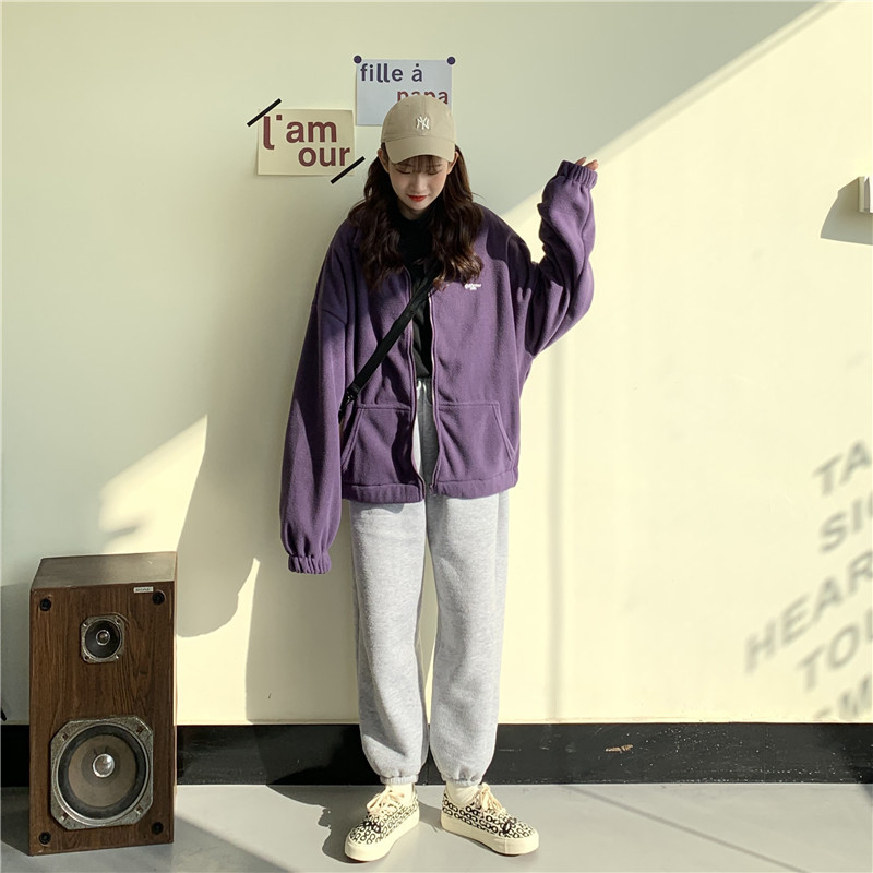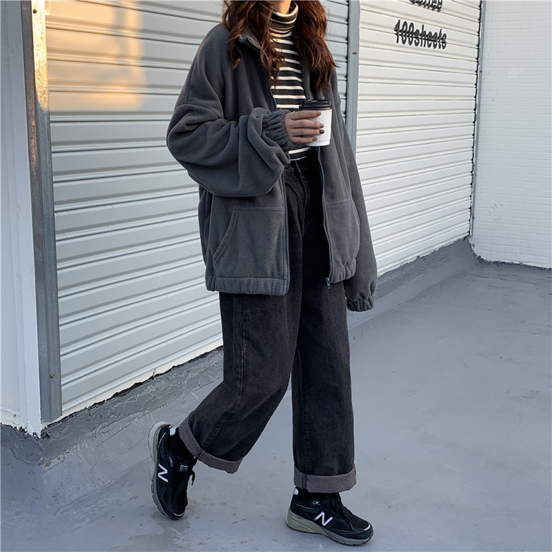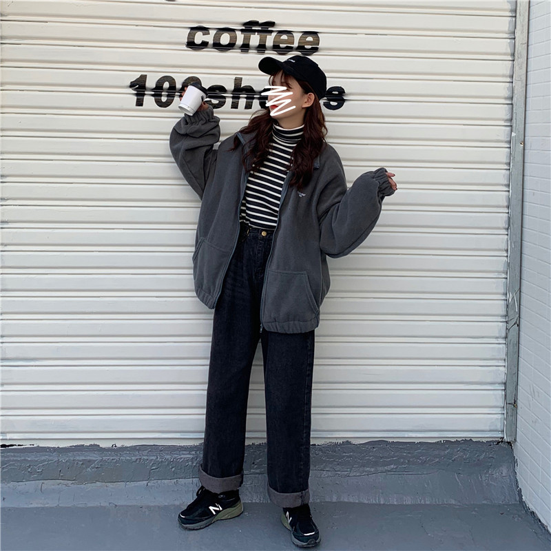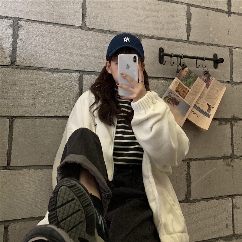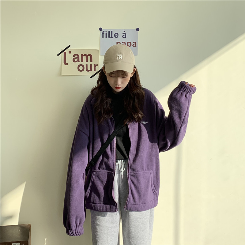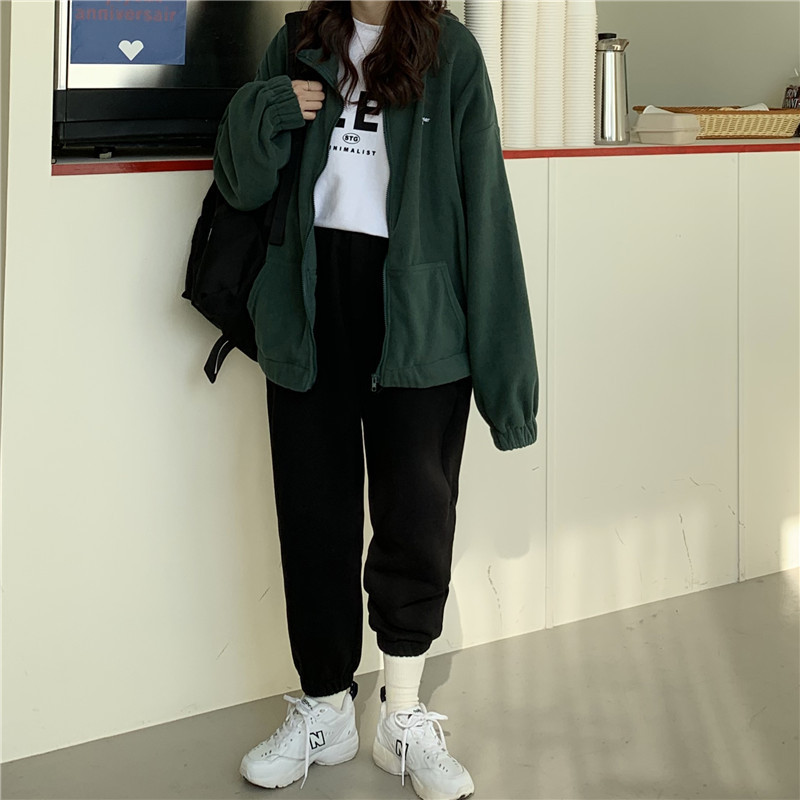 Утепленный свитер на флисовой подкладке, женский свободный флисовый кардиган на молнии в Корейском стиле с длинными рукавами для студентов, модный флисовый кардиган в Корейском стиле