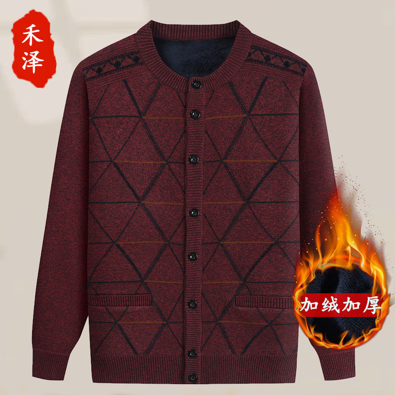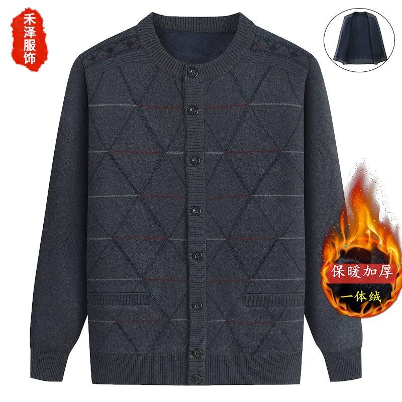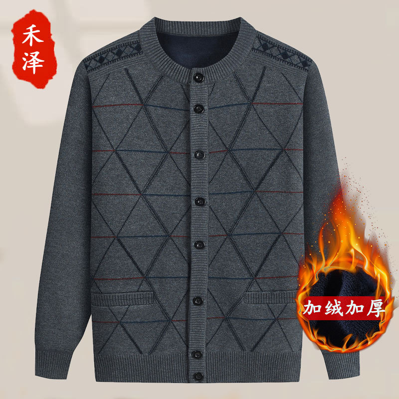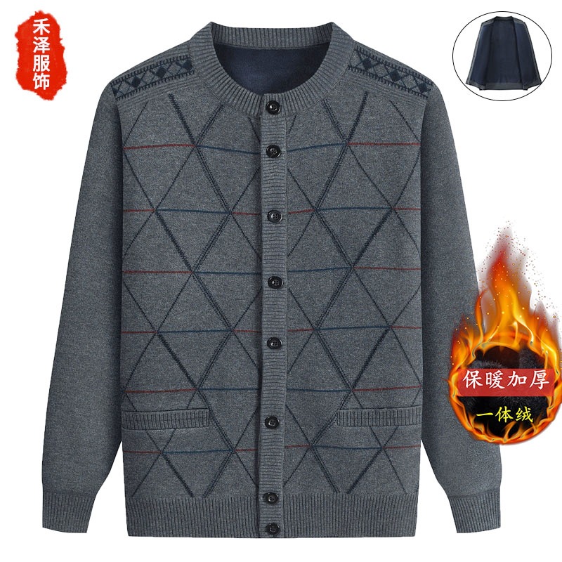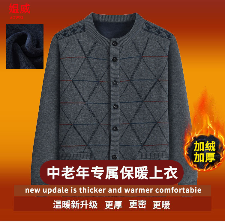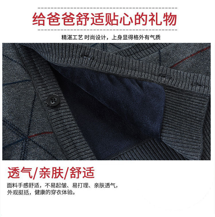 Для папы среднего возраста, осенне-зимний свитер на флисовой подкладке, мужская повседневная трикотажная одежда, кардиган для дедушки, теплая зимняя одежда