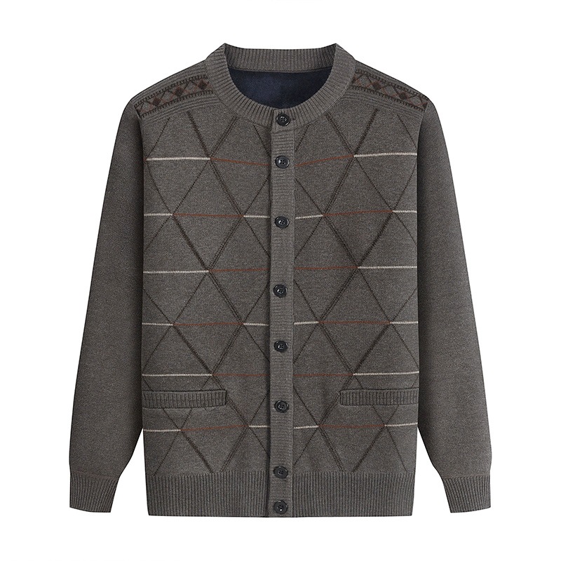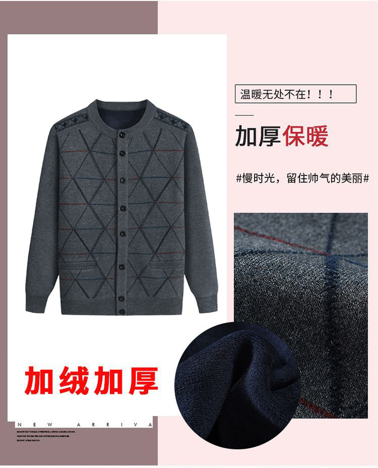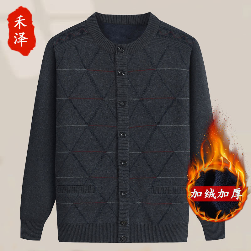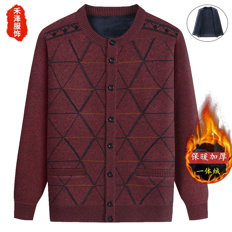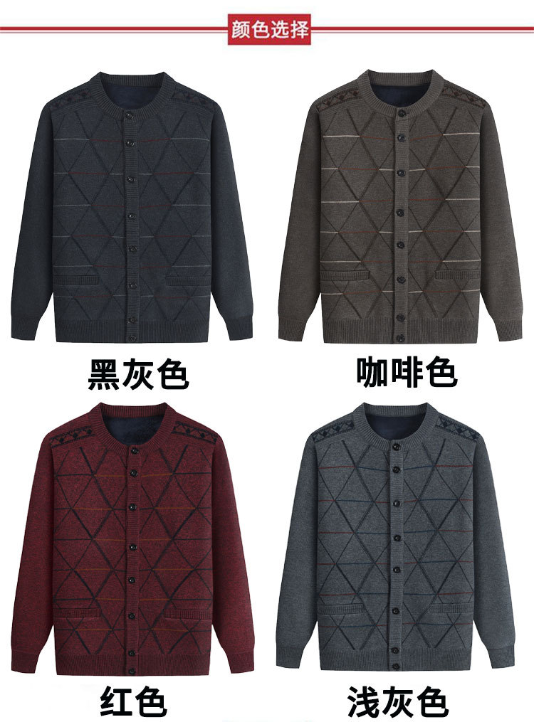 Для папы среднего возраста, осенне-зимний свитер на флисовой подкладке, мужская повседневная трикотажная одежда, кардиган для дедушки, теплая зимняя одежда