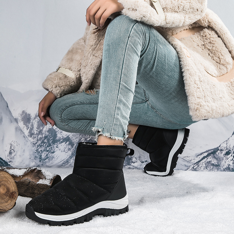 2023 новые зимние сапоги, женские непромокаемые Нескользящие теплые хлопчатобумажные ботинки до середины икры, толстая подошва, утолщенные хлопчатобумажные сапоги на флисовой подкладке, большие размеры