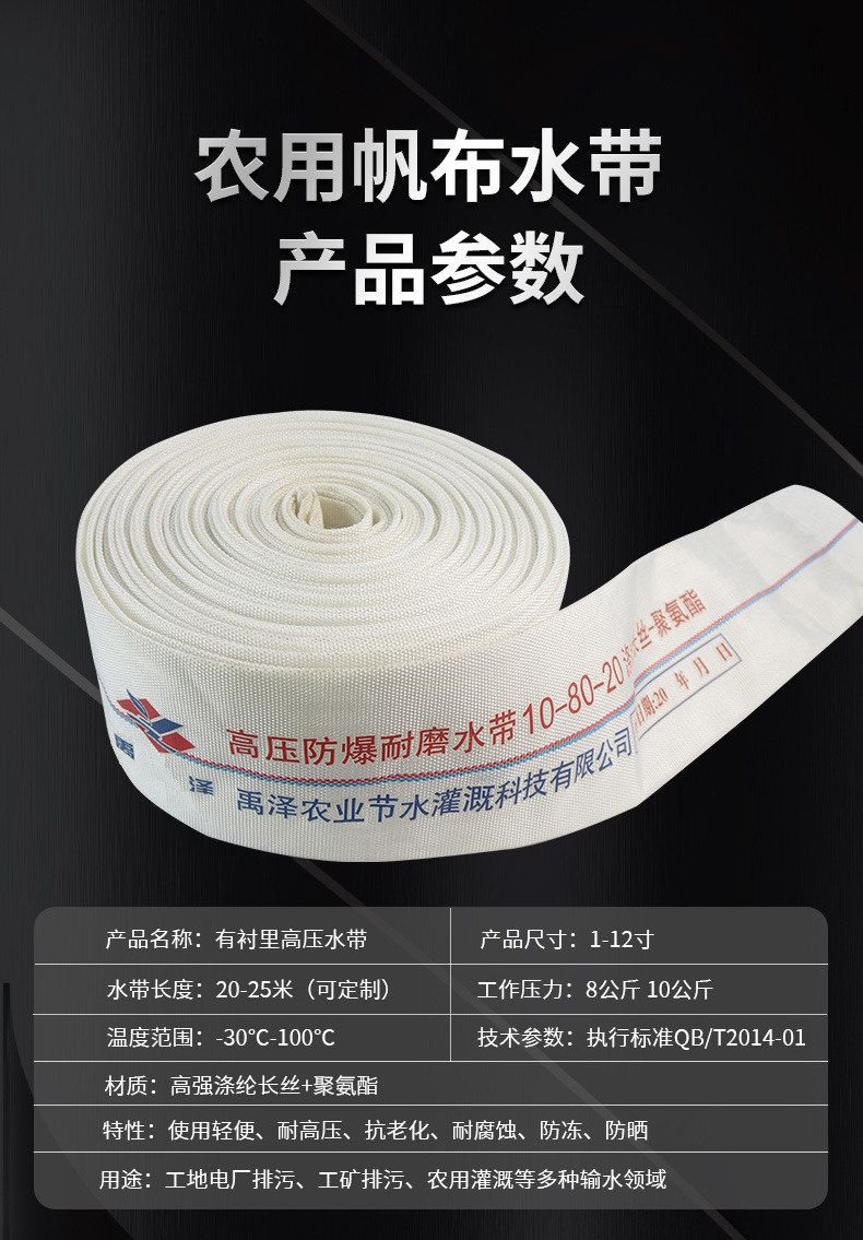 Сельскохозяйственный пожарный шланг высокого давления для орошения 1-дюймовый холст толщиной 8 дюймов, взрывозащищенный оросительный шланг, водопроводная труба