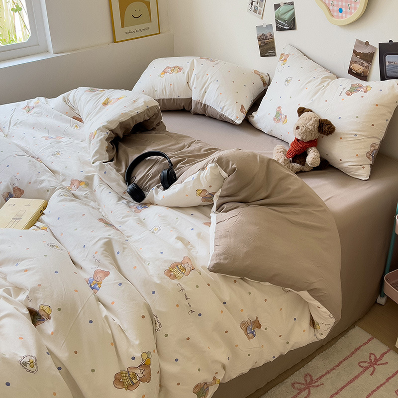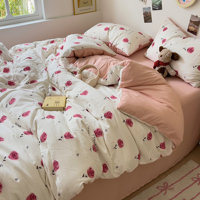 Новый Тип A двухслойный промытый хлопковый комплект из четырех предметов, мягкий маленький свежий пододеяльник, студенческий комплект из трех предметов, покрывало из четырех предметов