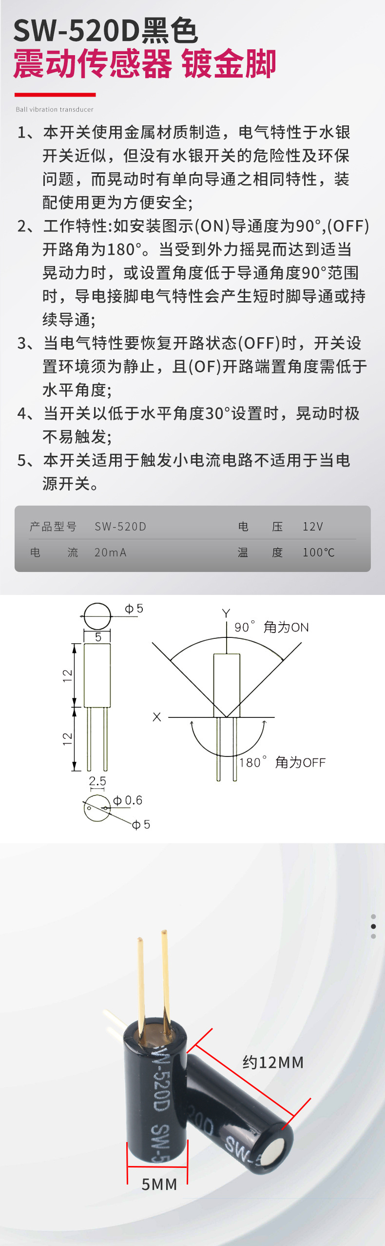 SW-520D Переключатель вибрации SW520D 5,2*11,5 шариковый переключатель угла наклона
