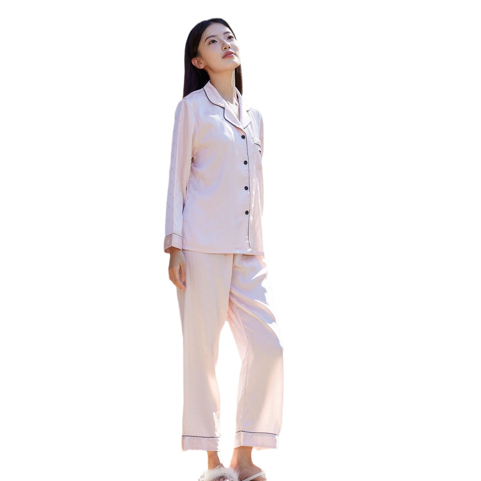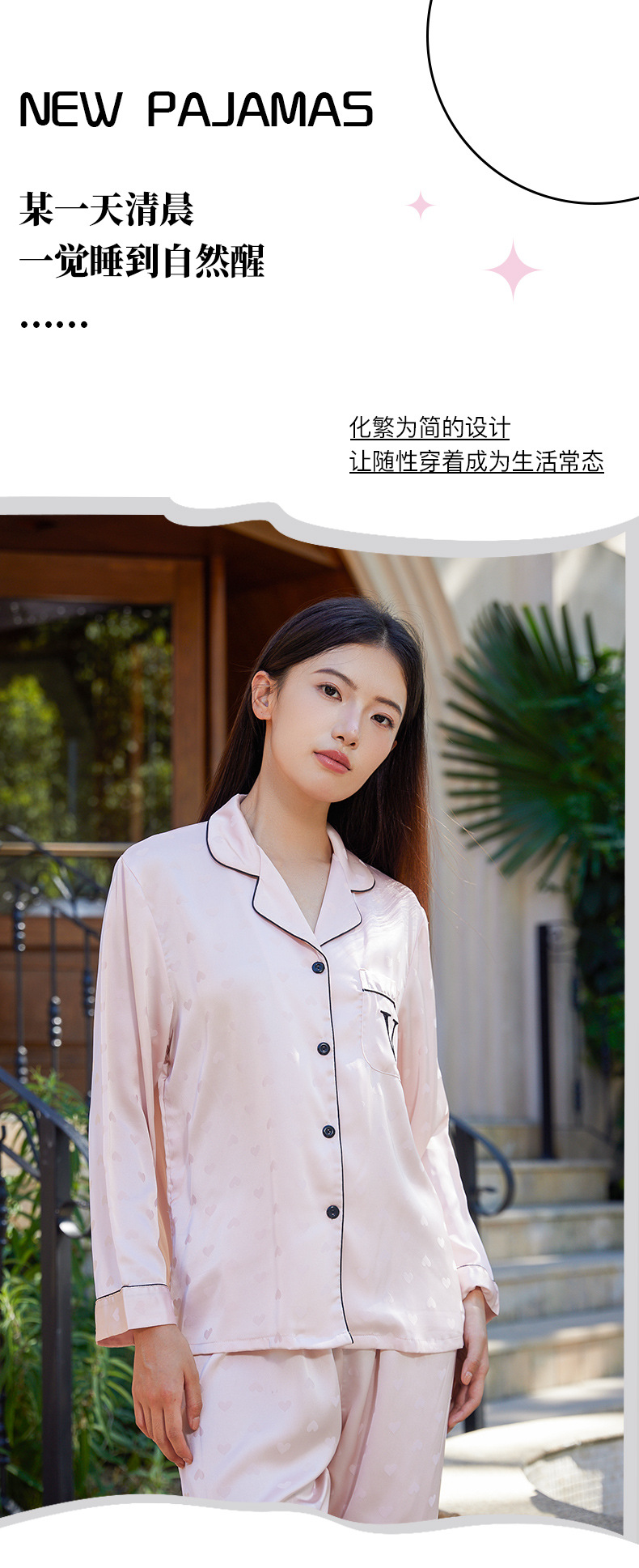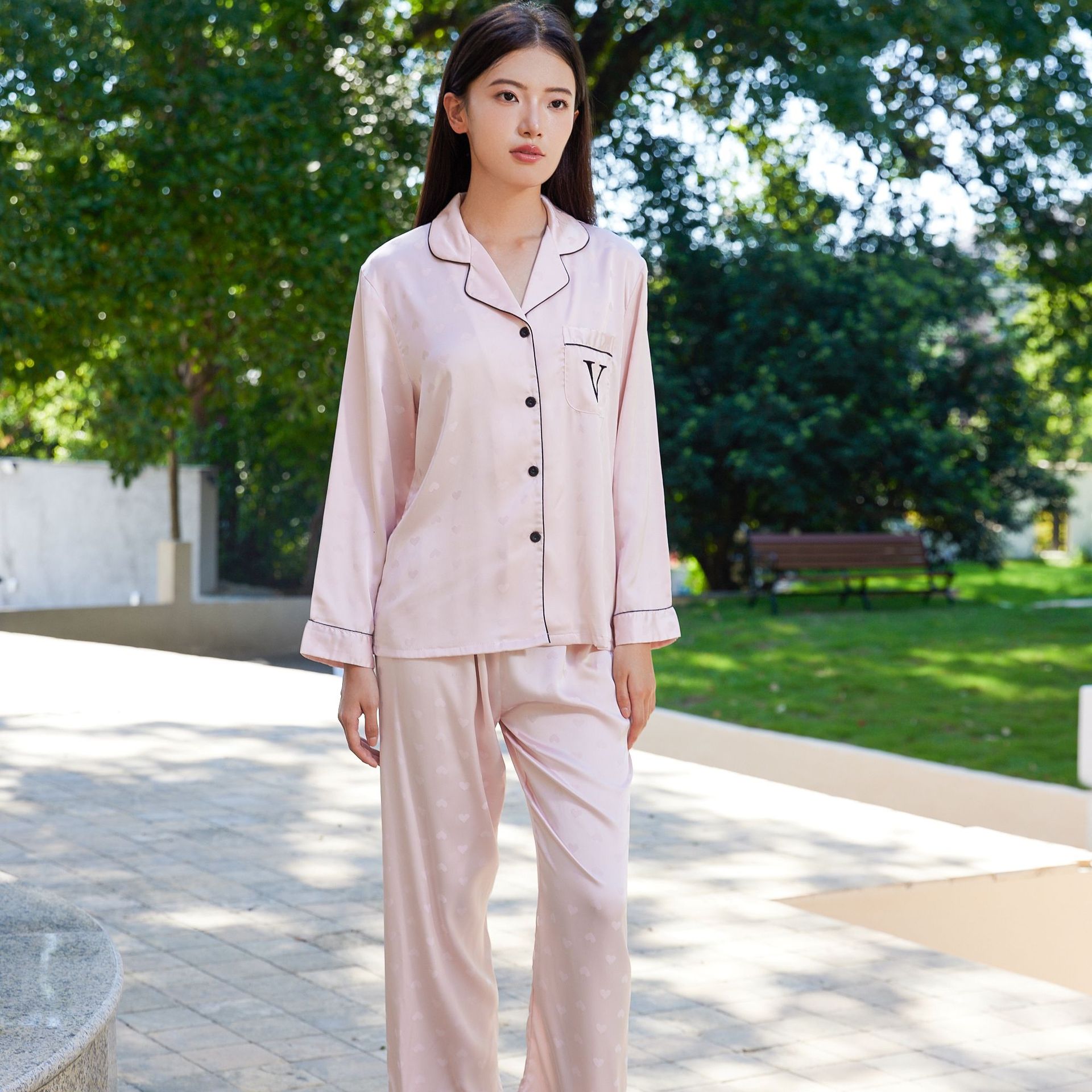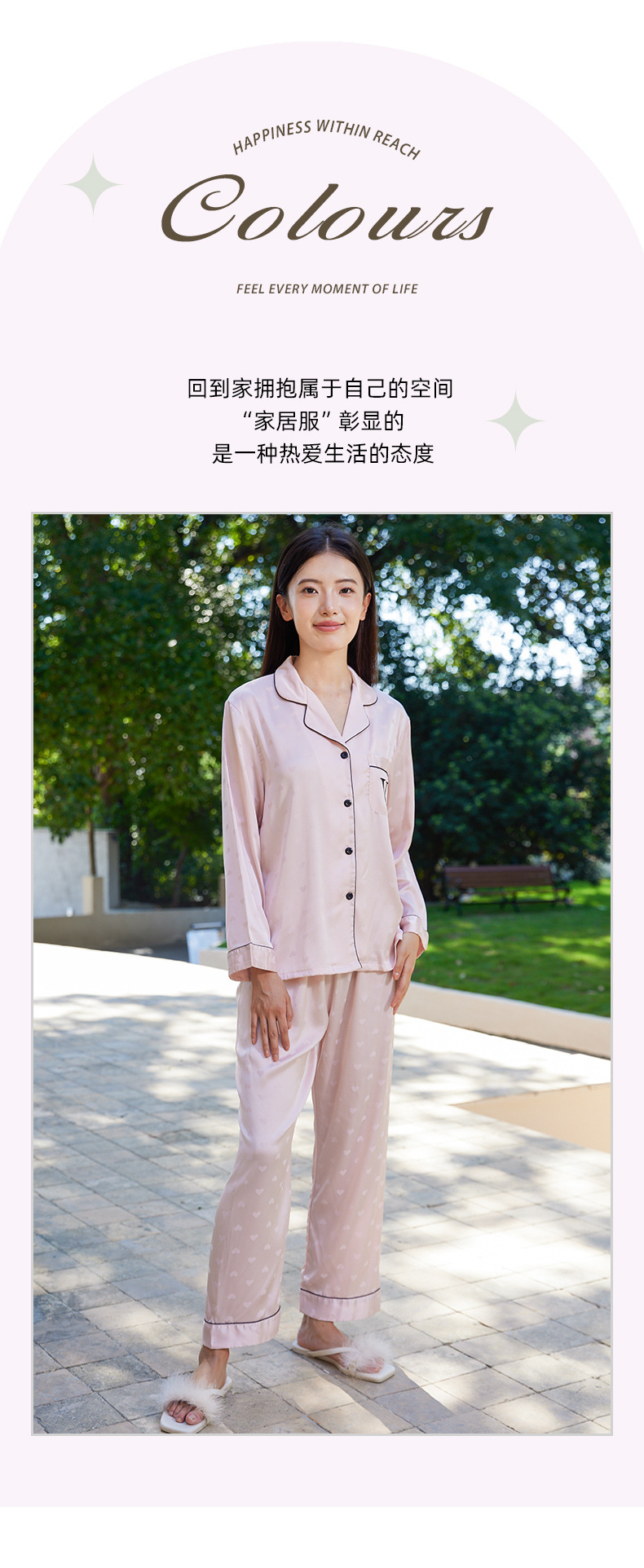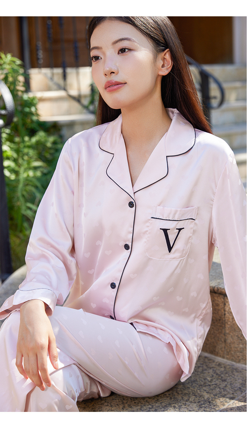 Свежие брюки с длинным рукавом весенне-осенние шелковые пижамы Женский летний кардиган Love Ice Silk Милый свободный домашний костюм, новинка
