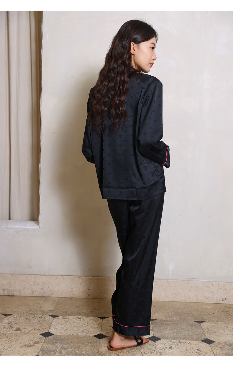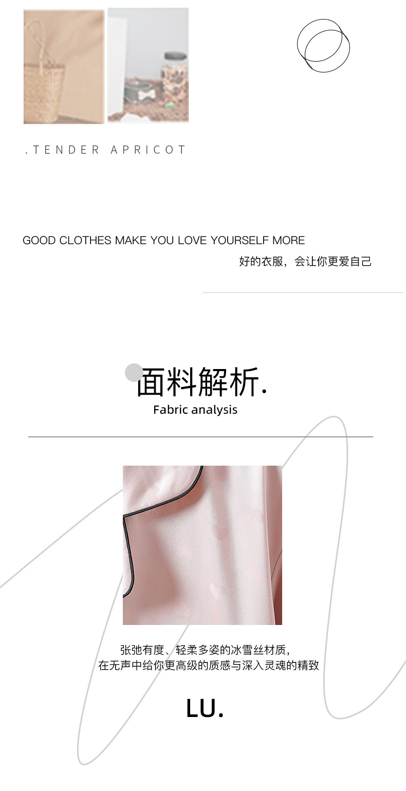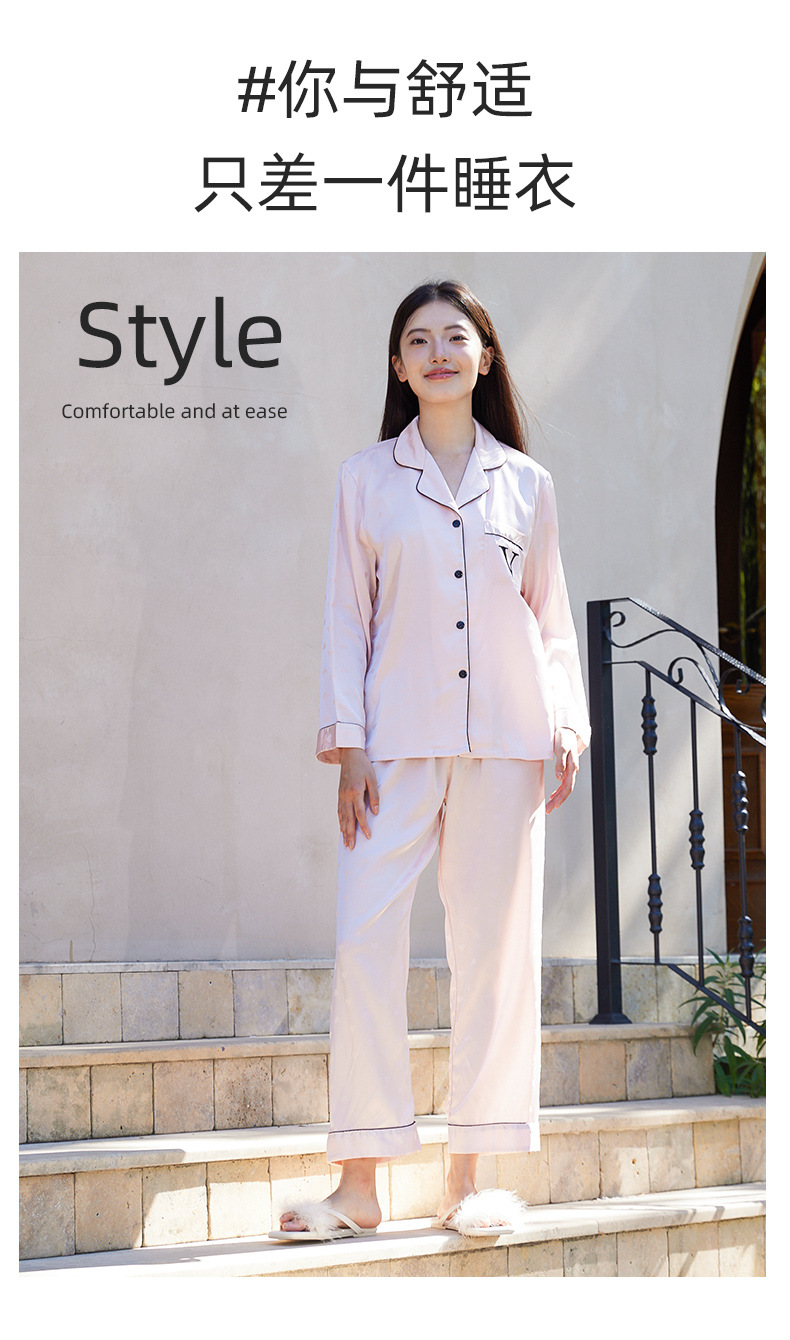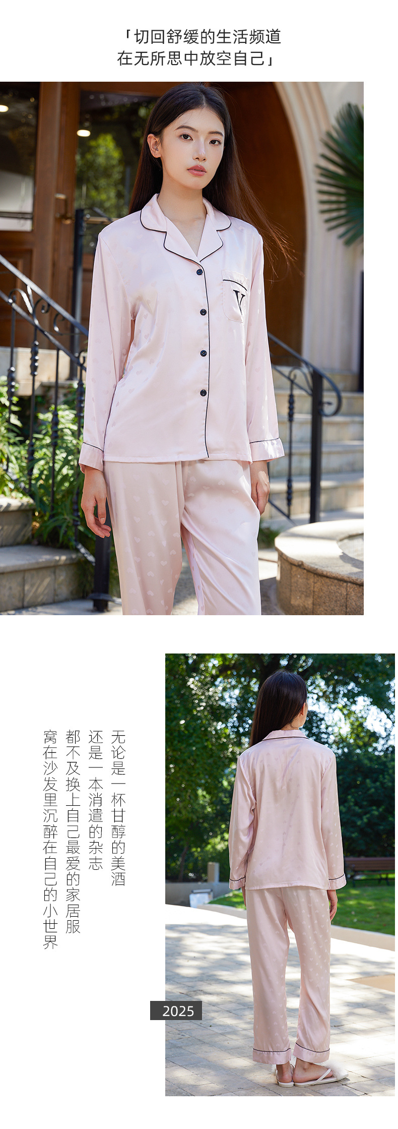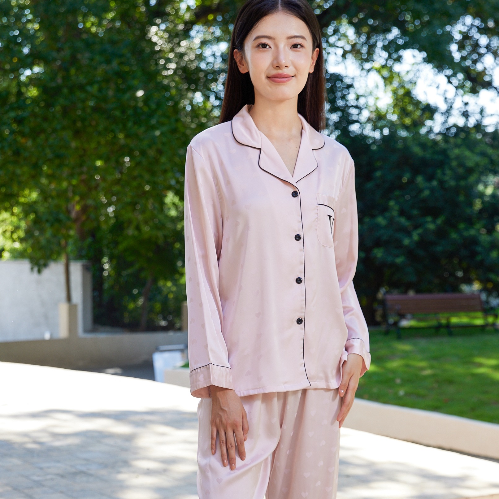 Свежие брюки с длинным рукавом весенне-осенние шелковые пижамы Женский летний кардиган Love Ice Silk Милый свободный домашний костюм, новинка