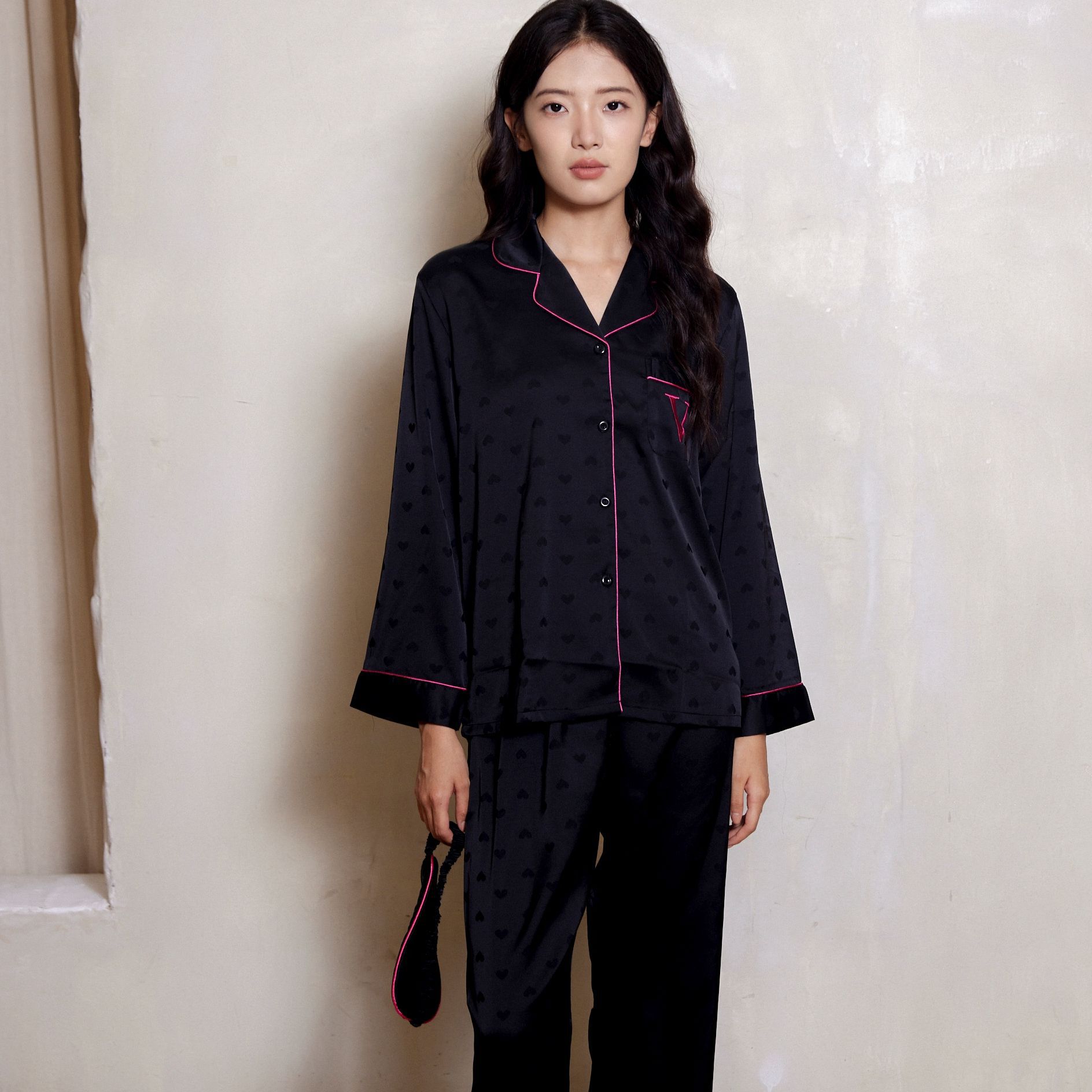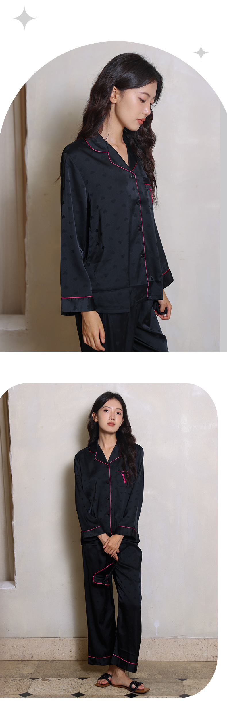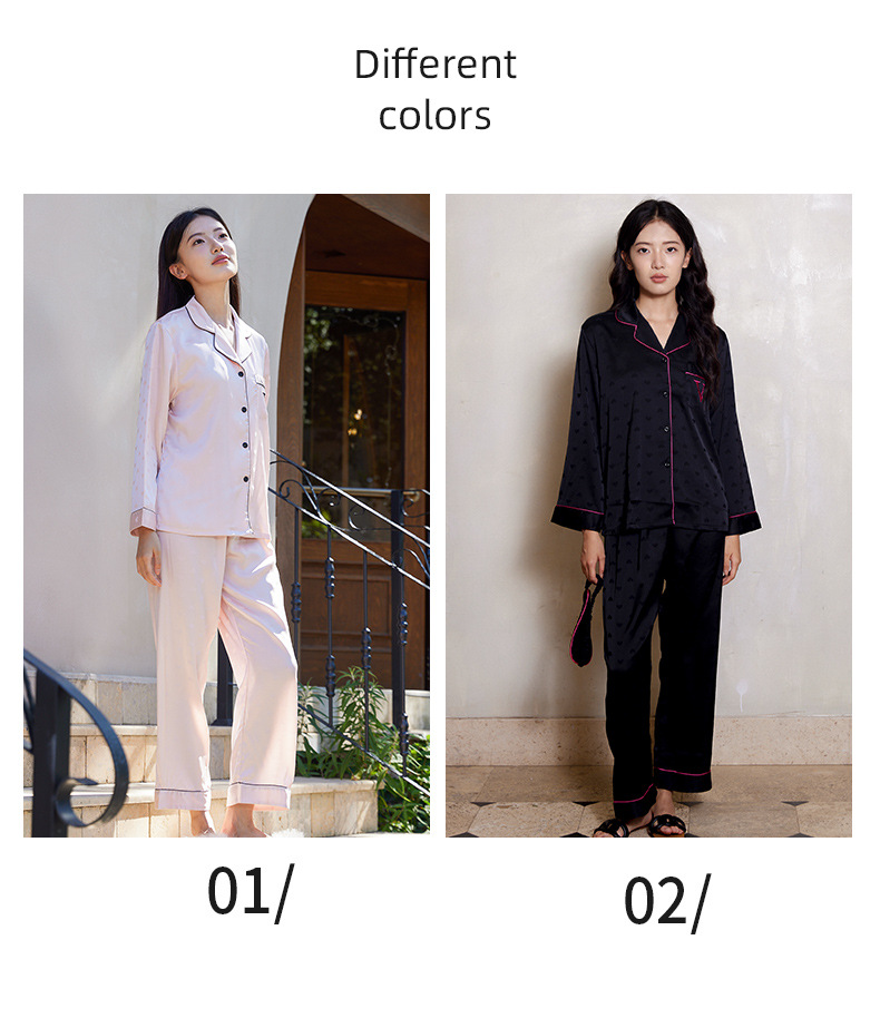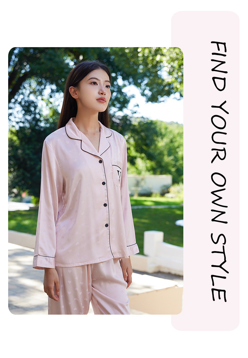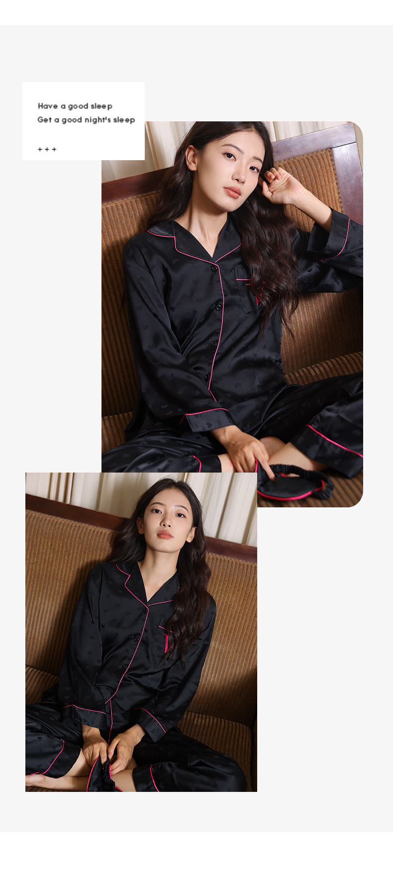 Свежие брюки с длинным рукавом весенне-осенние шелковые пижамы Женский летний кардиган Love Ice Silk Милый свободный домашний костюм, новинка