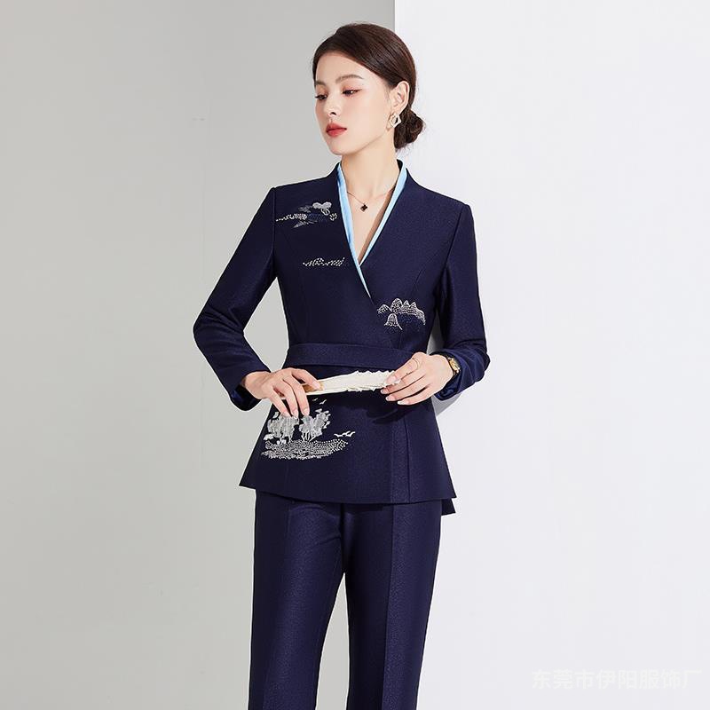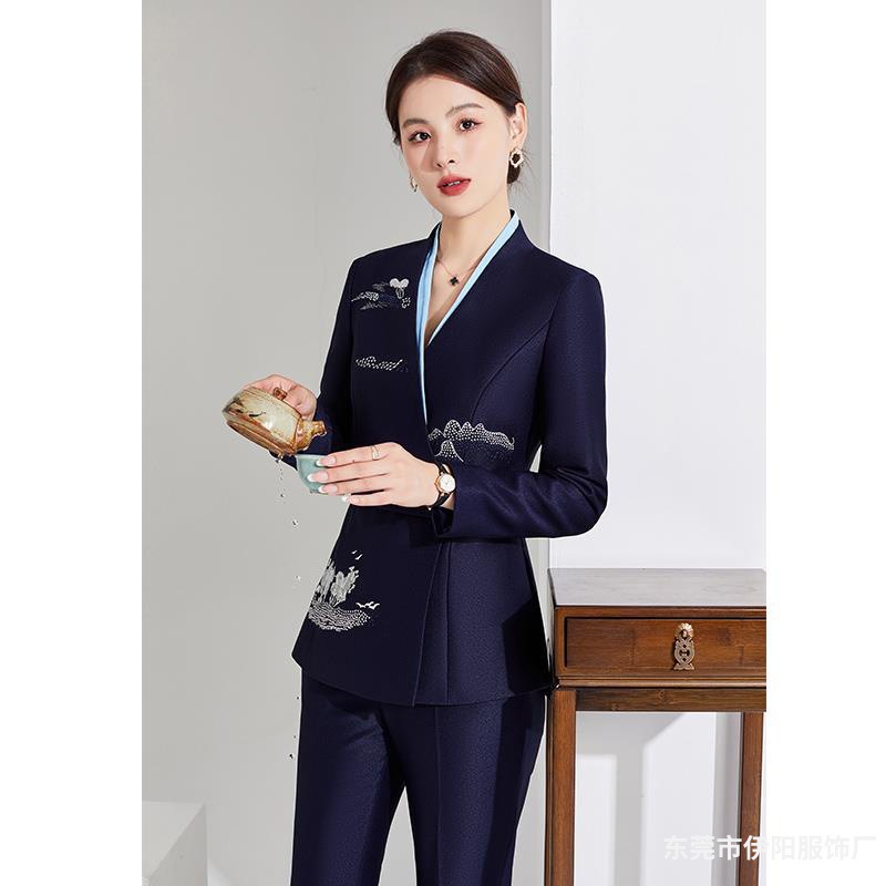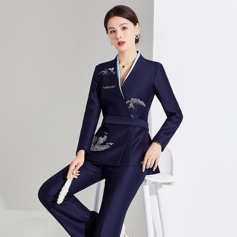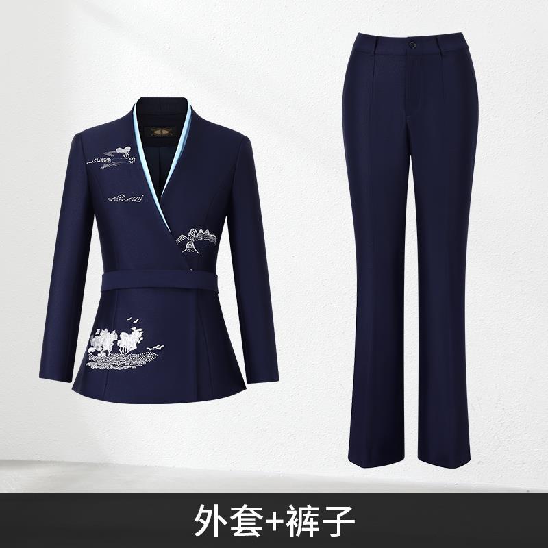 Профессиональный костюм женский 2023 Осень Новый Ретро Национальный стиль Модный текстурный костюм платье Рабочая одежда