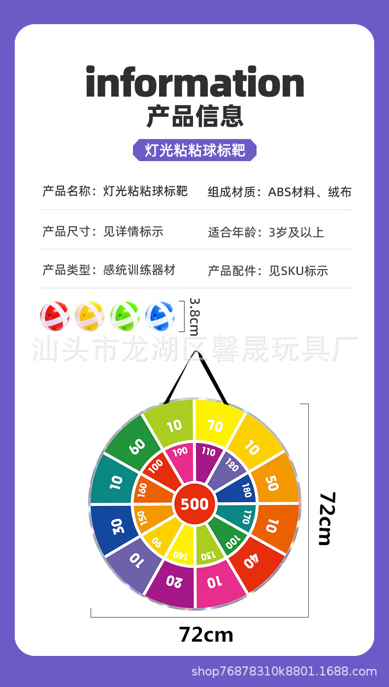 Новая трансграничная 72 см Складная звуковая и световая пластина для Дротика Светодиодная лампа стальное кольцо липкая шаровая мишень мультфильм липкая мишень мяч игрушка