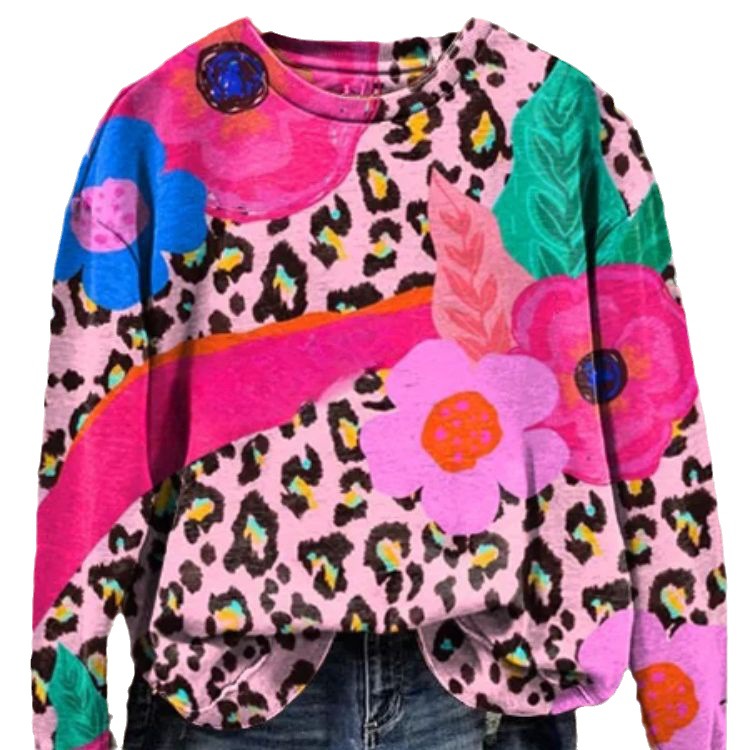 Свитер больших размеров с круглым вырезом и принтом, европейский и американский Новый свободный удобный топ с буквами, Женский цветной узор, новинка 2023 года
