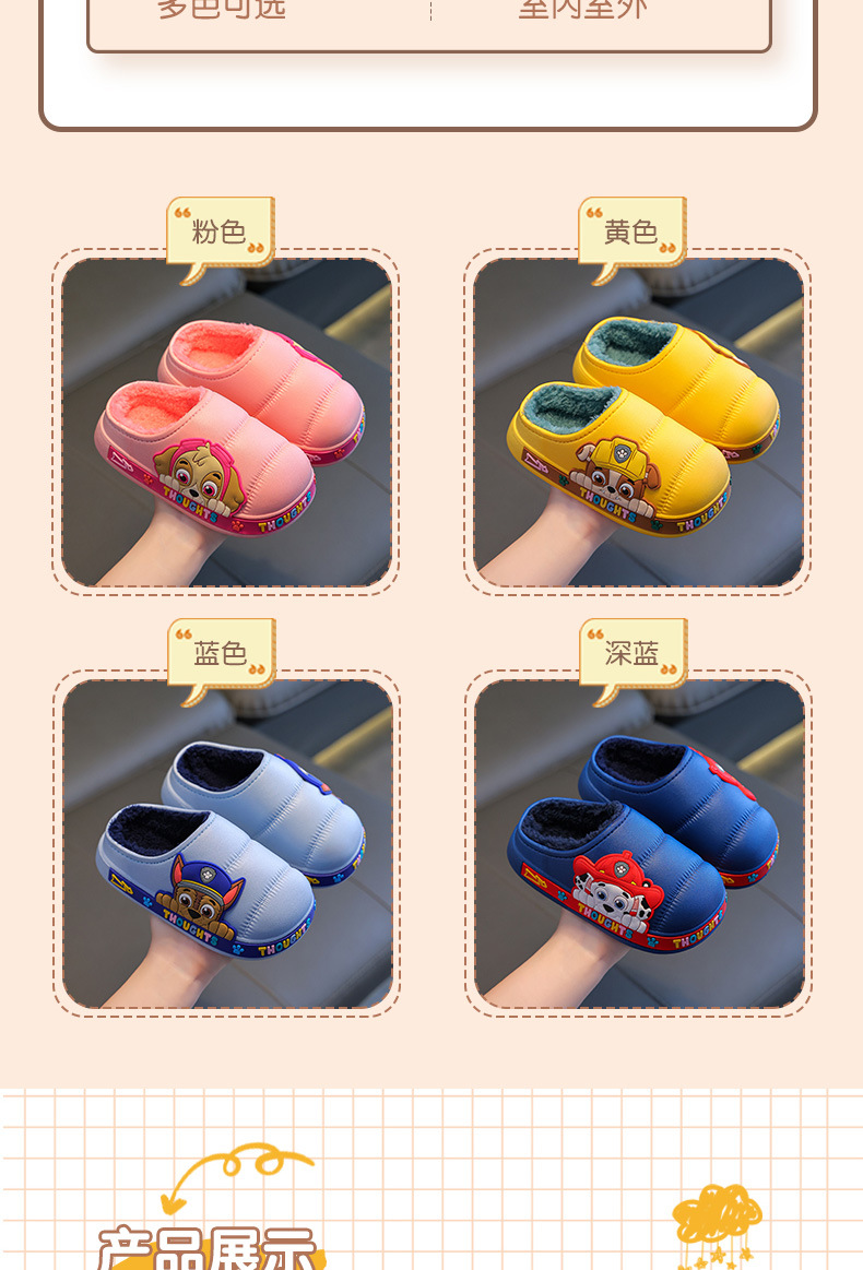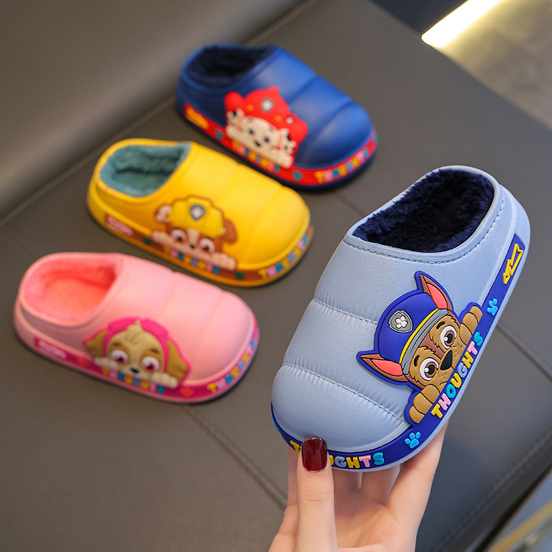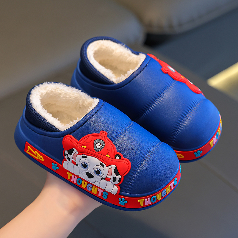 Wang Team Зимние Детские хлопковые тапочки для мальчиков и девочек, теплая водонепроницаемая сумка на флисовой подкладке с хлопковыми тапочками больших, средних и маленьких детей