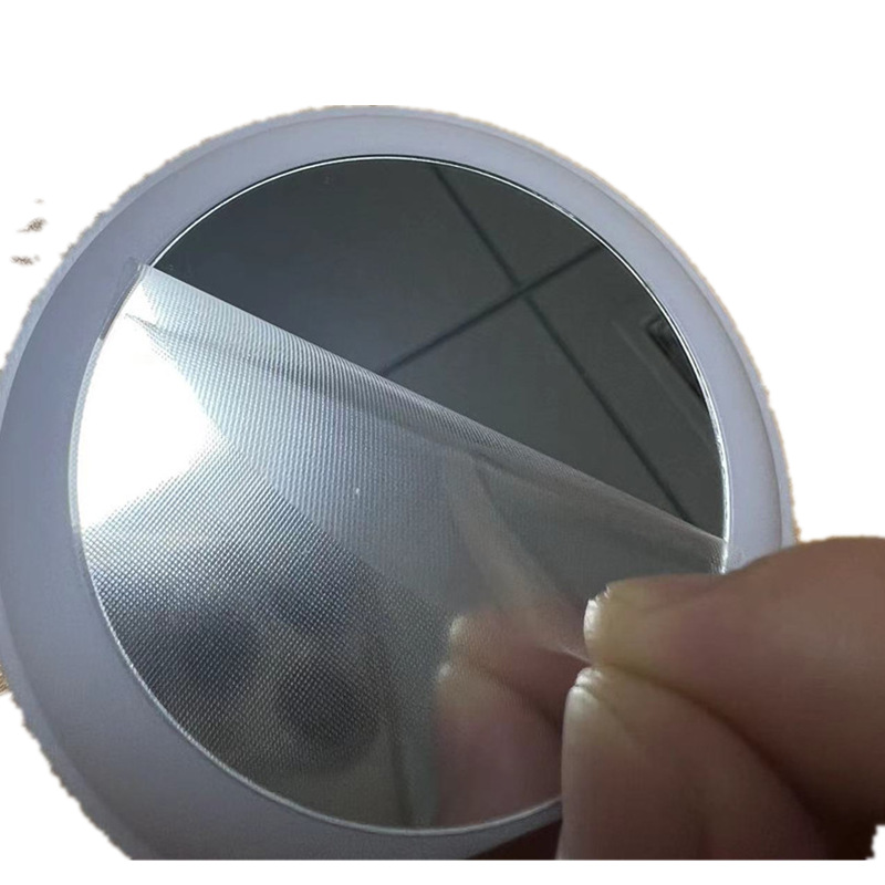 此款PET保护膜是以PET为基本带胶面做网格处理,现涂以硅胶胶水收卷而成,常用厚度有0.03mm(用于轻微弧面等表面不是很平的产品粘贴),0.05mm(厚度厚,大规格产品比较好贴)。贴于化妆镜等高光产品表面不会有汽泡,一放就自己吸附。欢迎来电咨询洽谈索样。