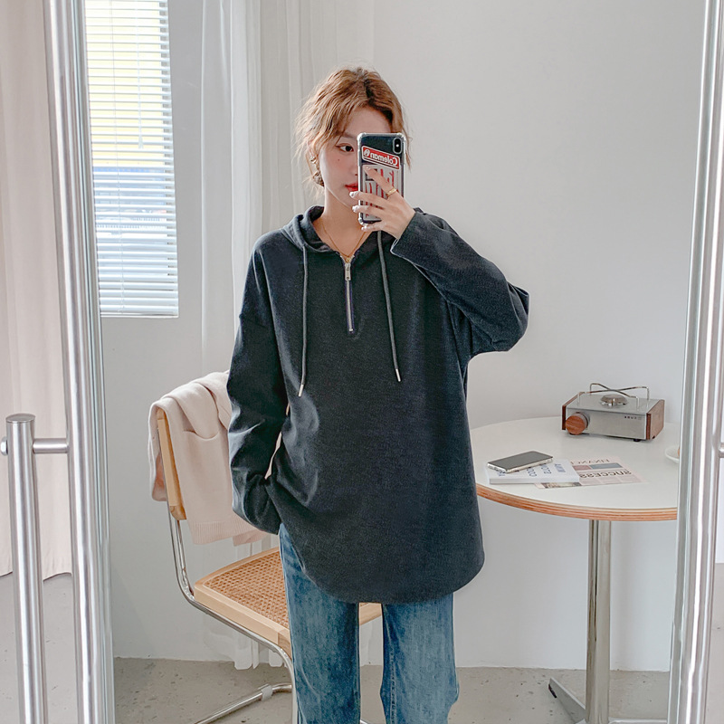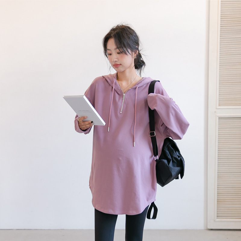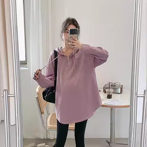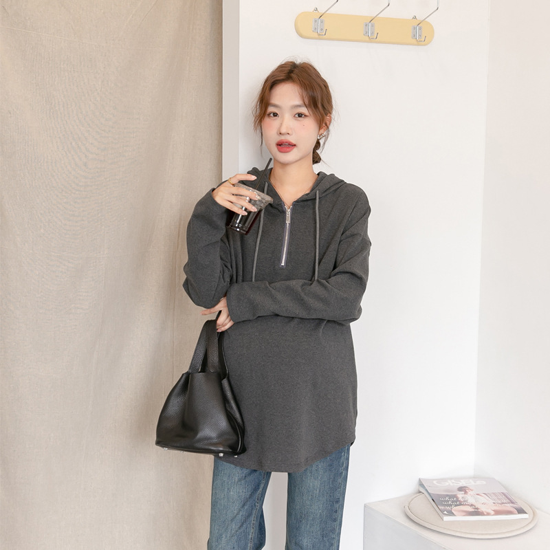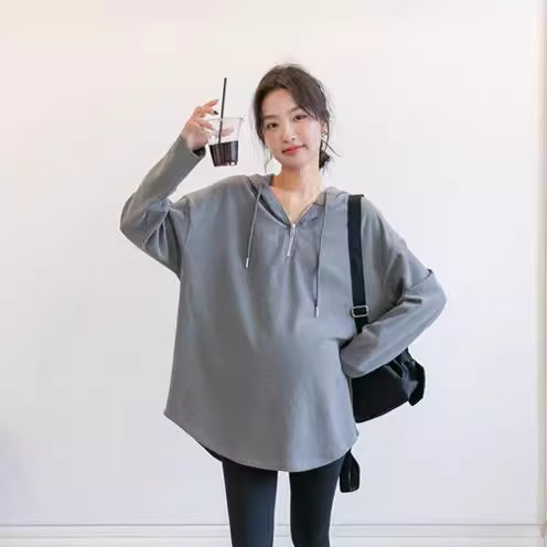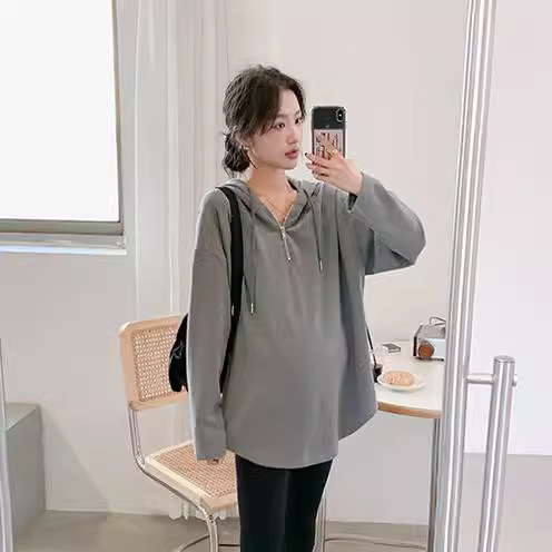 Осенне-зимняя женская одежда для беременных, футболка с начесом в Корейском стиле с капюшоном для беременных, Свободный Повседневный Топ больших размеров, женская одежда для беременных, утолщенная