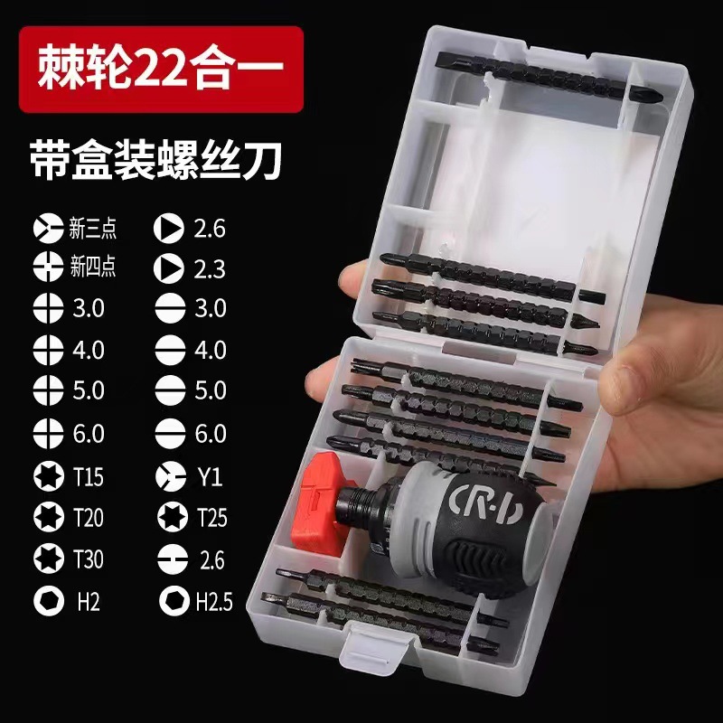 Отвертка с храповым механизмом 13-в-1 + намагничиватель (оптом); Отвертка с храповым механизмом 18-в-1 + намагничиватель (в коробке); Отвертка с трещоткой 22-в-1 + намагничиватель (в коробке); Одинарная трещотка + намагничиватель (оптом)