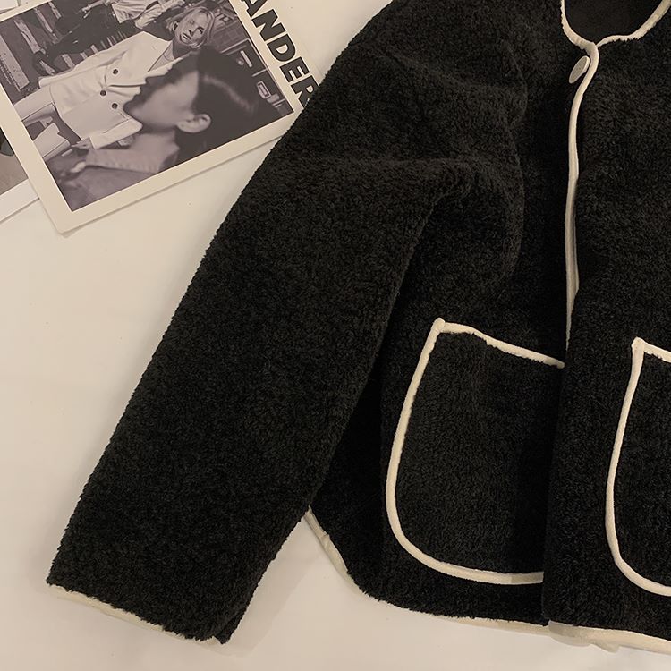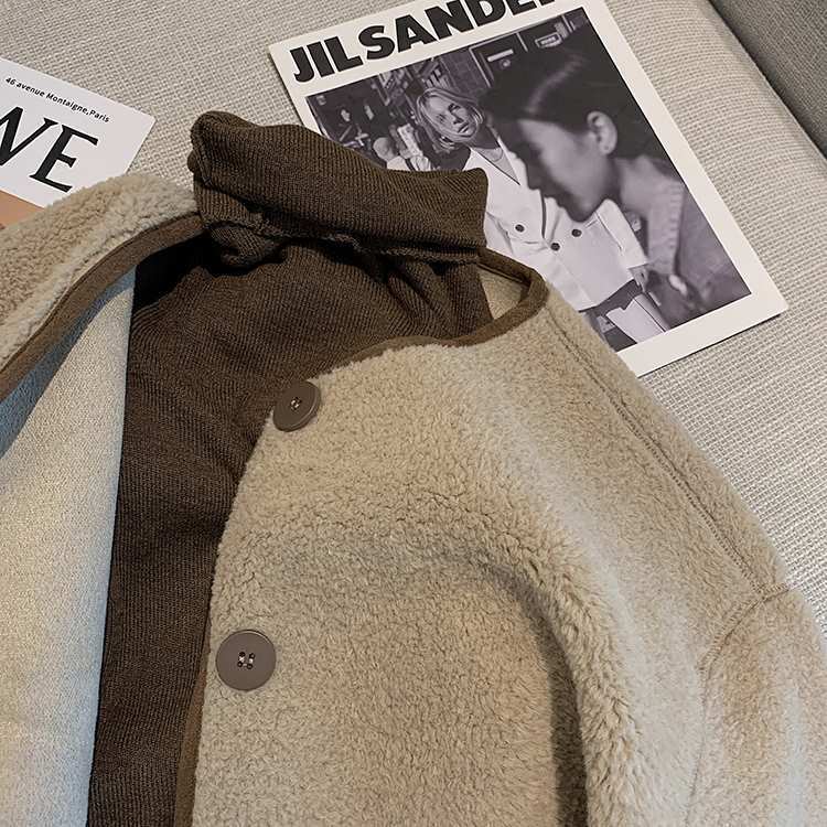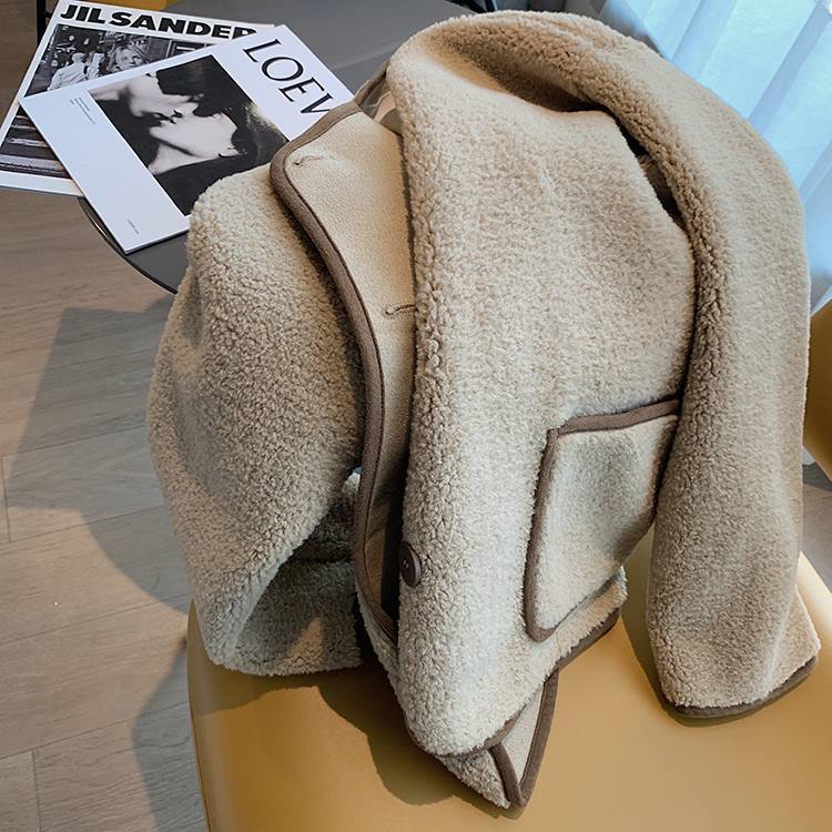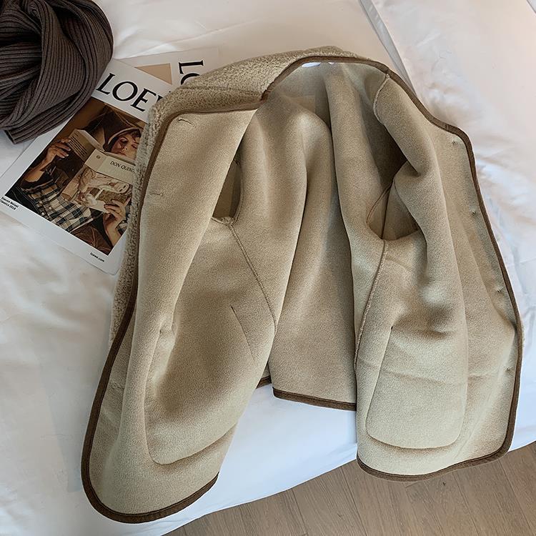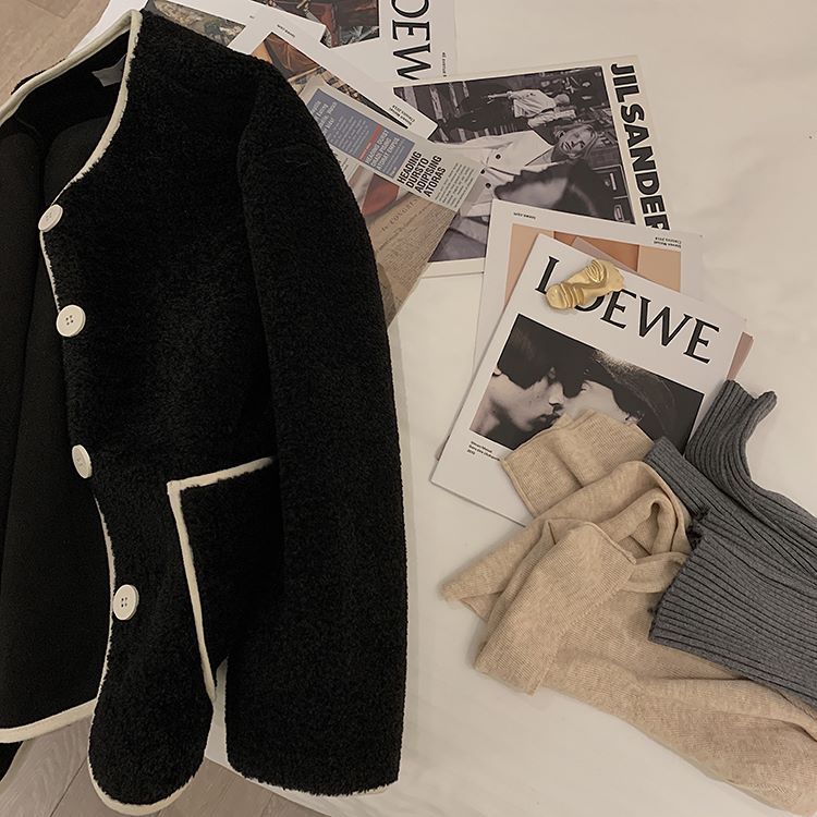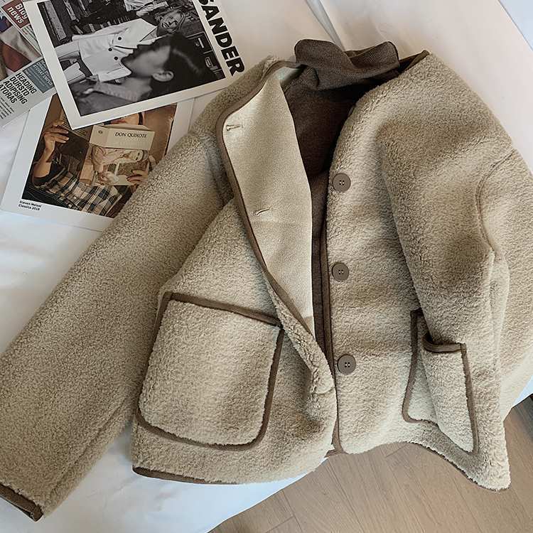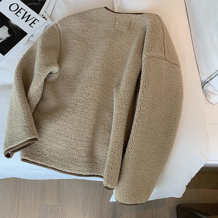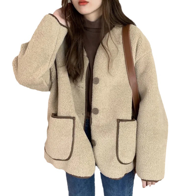 Женское пальто из овчины цвета хаки с круглым вырезом, новый корейский свободный короткий топ в западном стиле, осень 2023 года