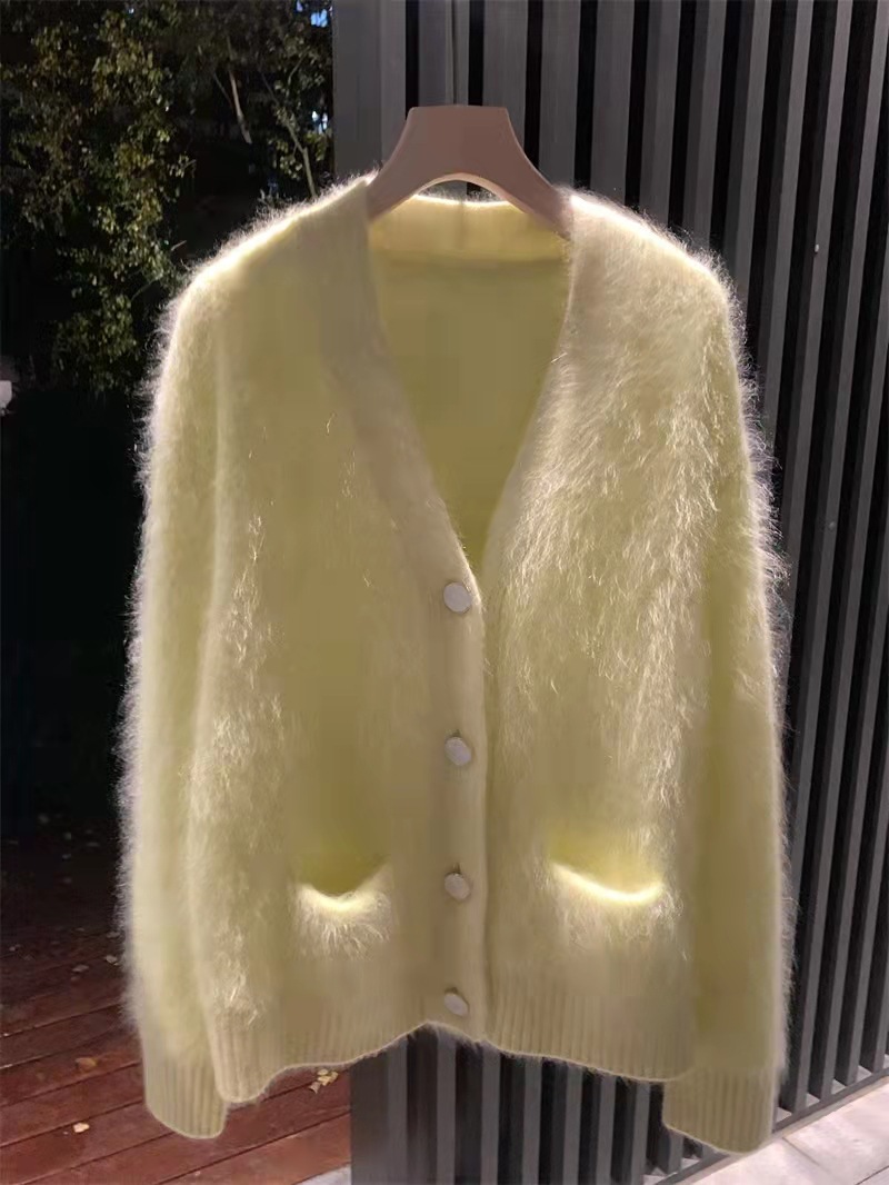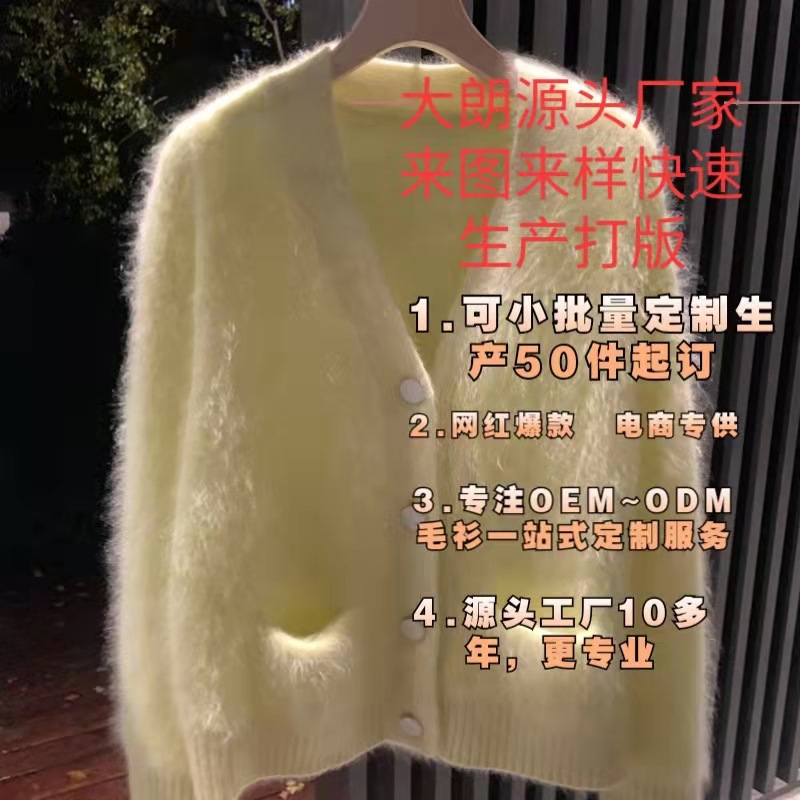 Мохеровый кардиган женский трикотаж обработка одежды свитер на фигуру образец печати небольшой партии на заказ OEM