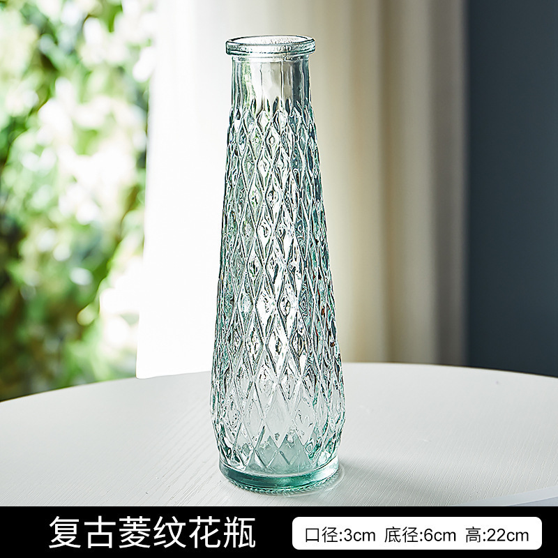 Французская винтажная тисненая стеклянная ваза ins ветер высокий цвет сетка красные цветы прозрачная цветочная композиция для гостиной декоративная ваза