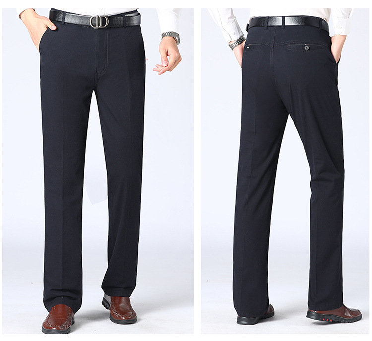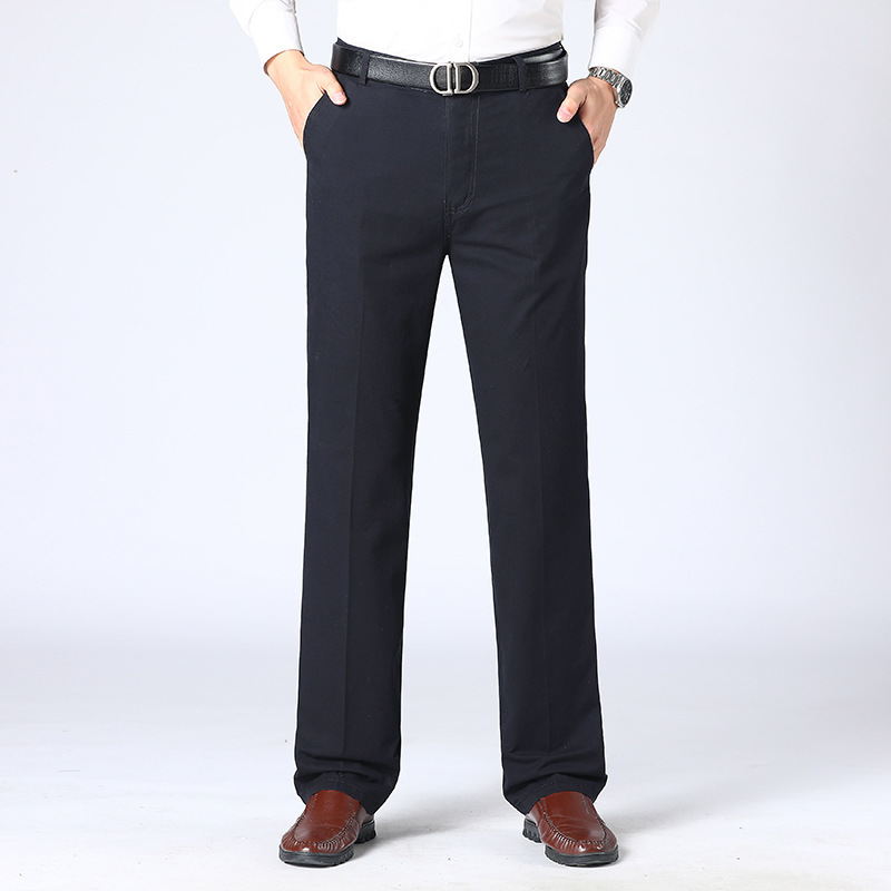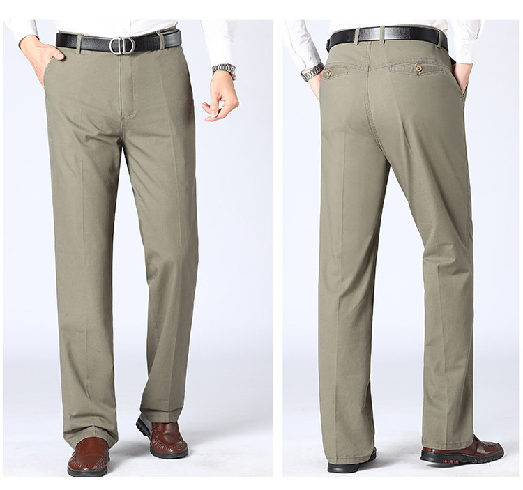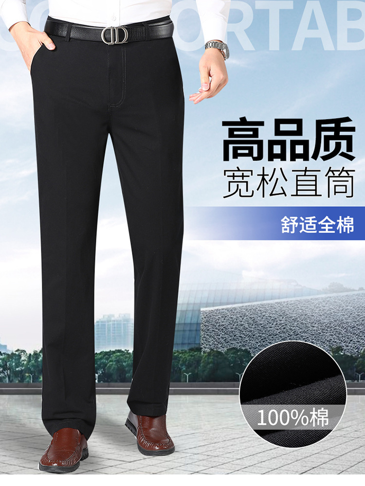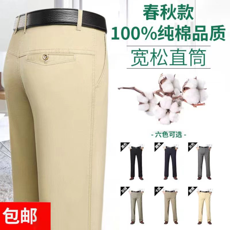 Повседневные брюки из чистого хлопка для мужчин среднего возраста, прямые свободные мужские брюки для мужчин среднего и пожилого возраста, брюки для папы с высокой талией и глубоким шаговым швом