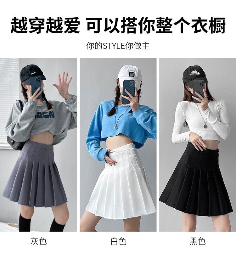 Плиссированная юбка в корейском стиле для женщин, универсальная и простая, весна, лето и осень 2025 года, высокая талия, утягивающая юбка А-силуэта с подкладкой.