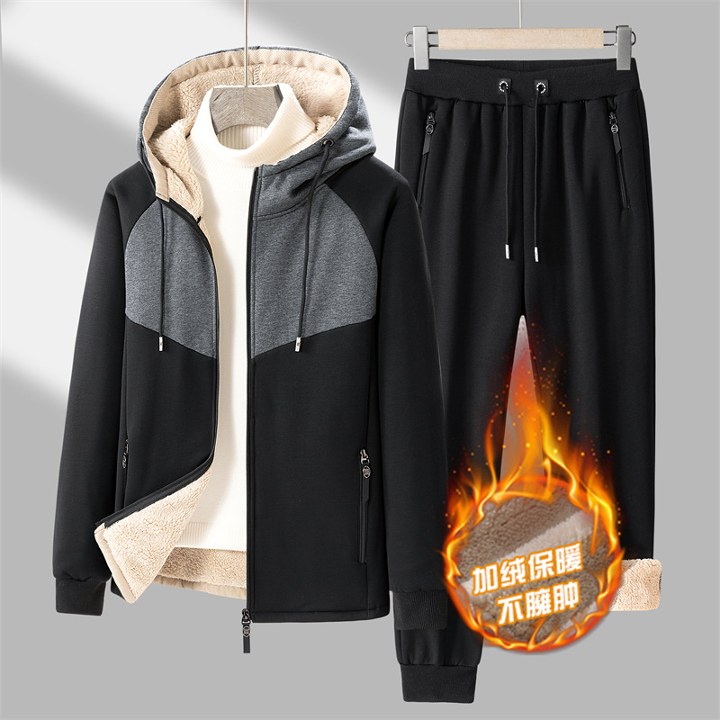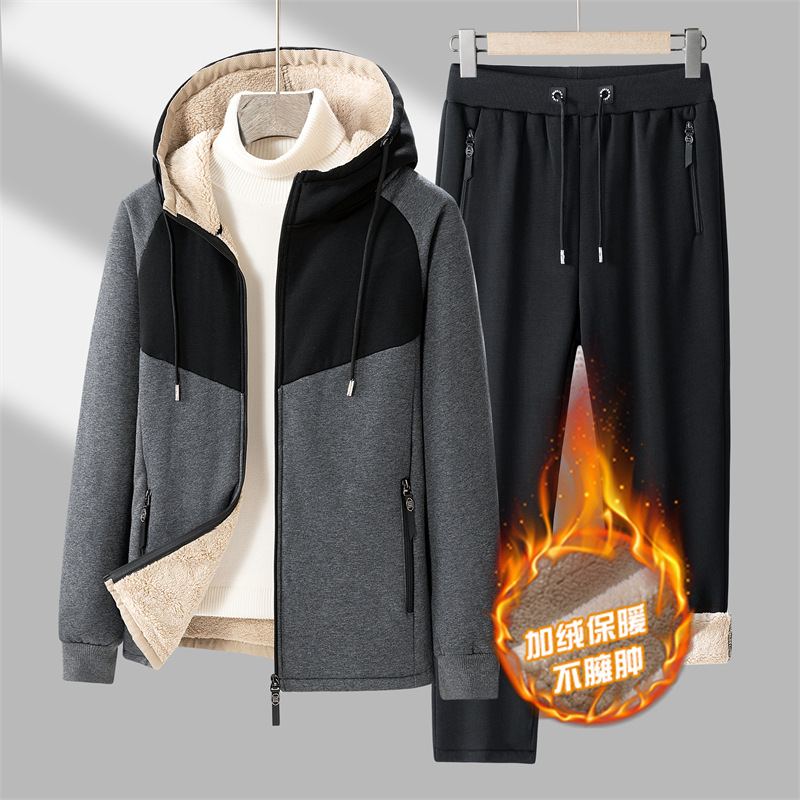 Плюшевый толстый теплый кашемир спортивный набор из двух частей осенний и зимний кардиган свитер брюки новый костюм мужской