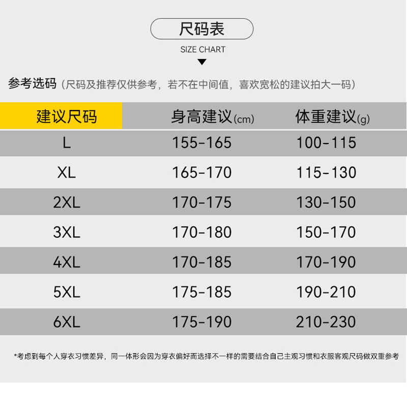 L; XL; 2XL; 3XL; 4XL; 5XL; 6XL