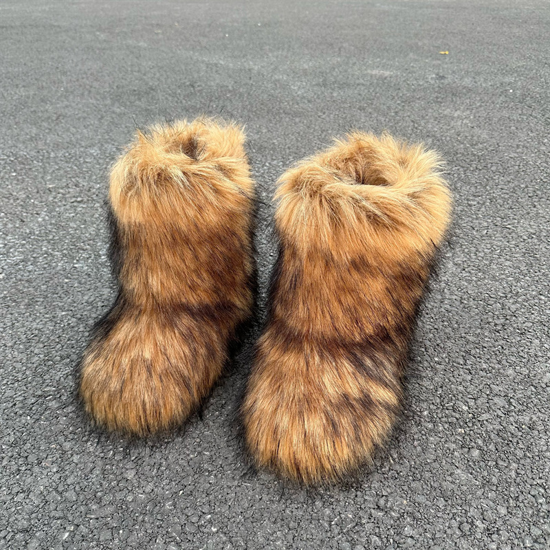 Европейский и американский трансграничный искусственный мех енота плюшевые зимние сапоги с закрытым носком теплый пушистый мех горячая девушка y2g стиль внешней торговли
