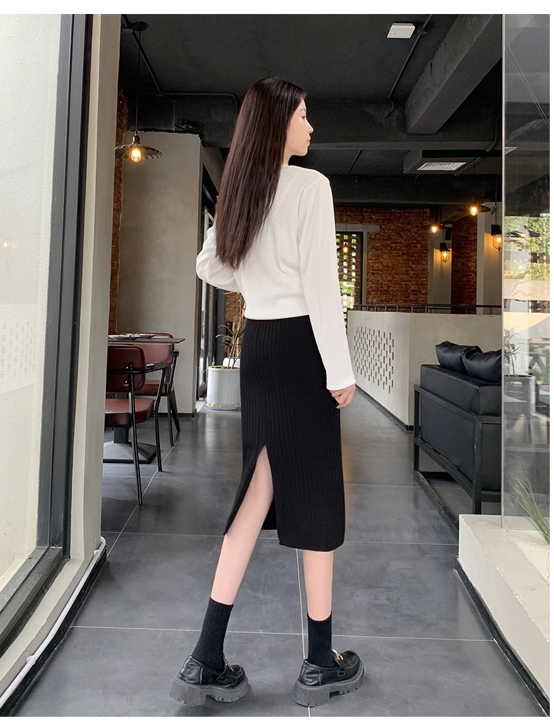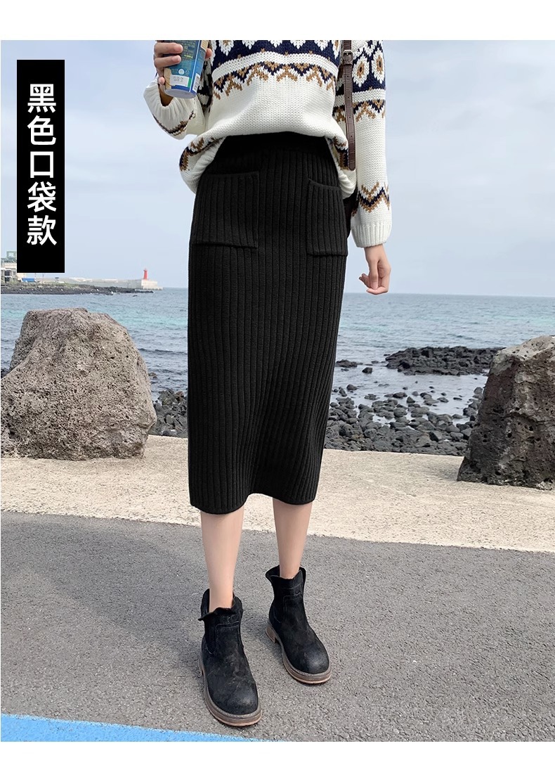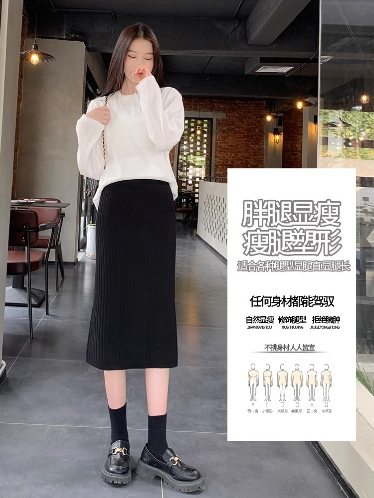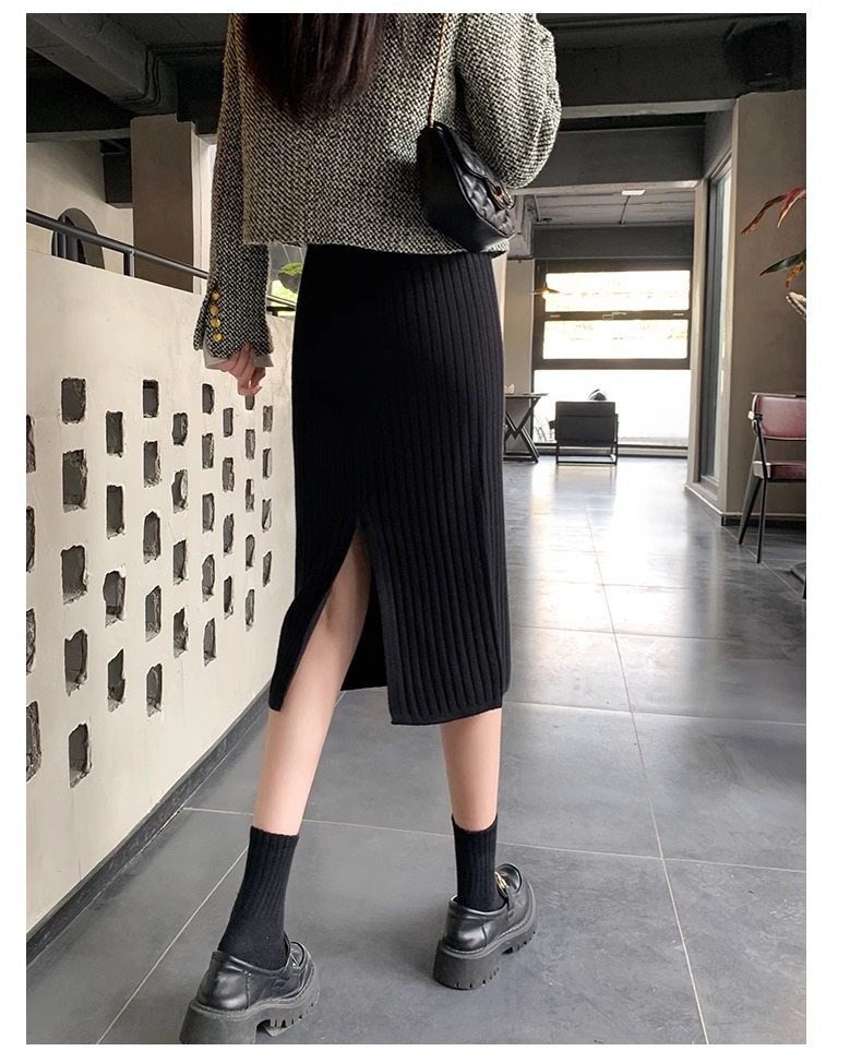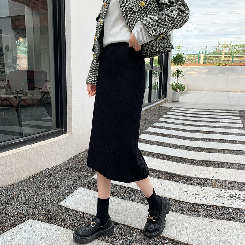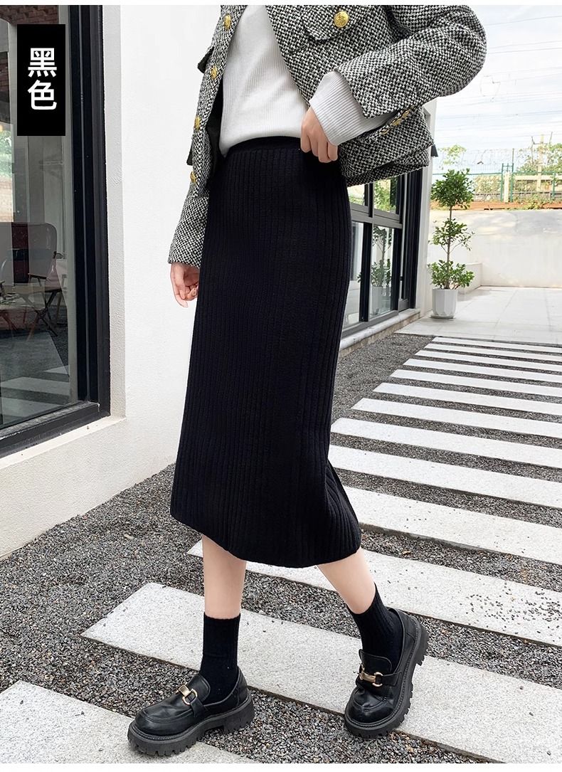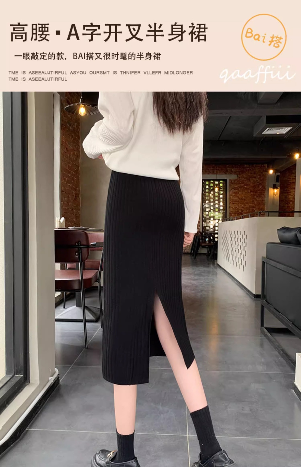 Вязаная юбка для женщин, новинка 2022 года, осенне-зимняя маленькая длинная юбка средней длины на весну и осень, закрывающая бедра.