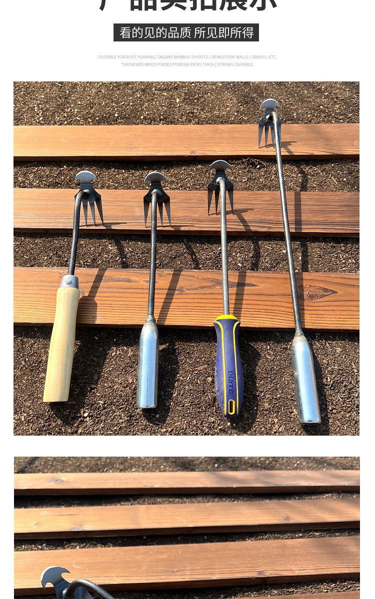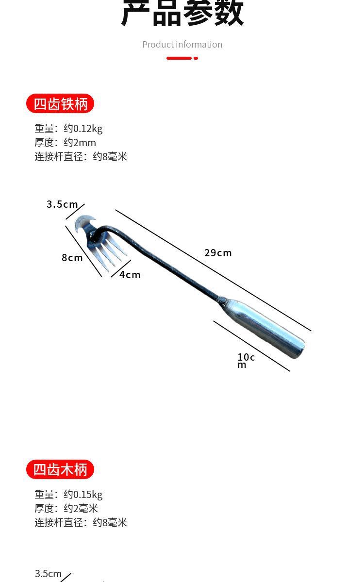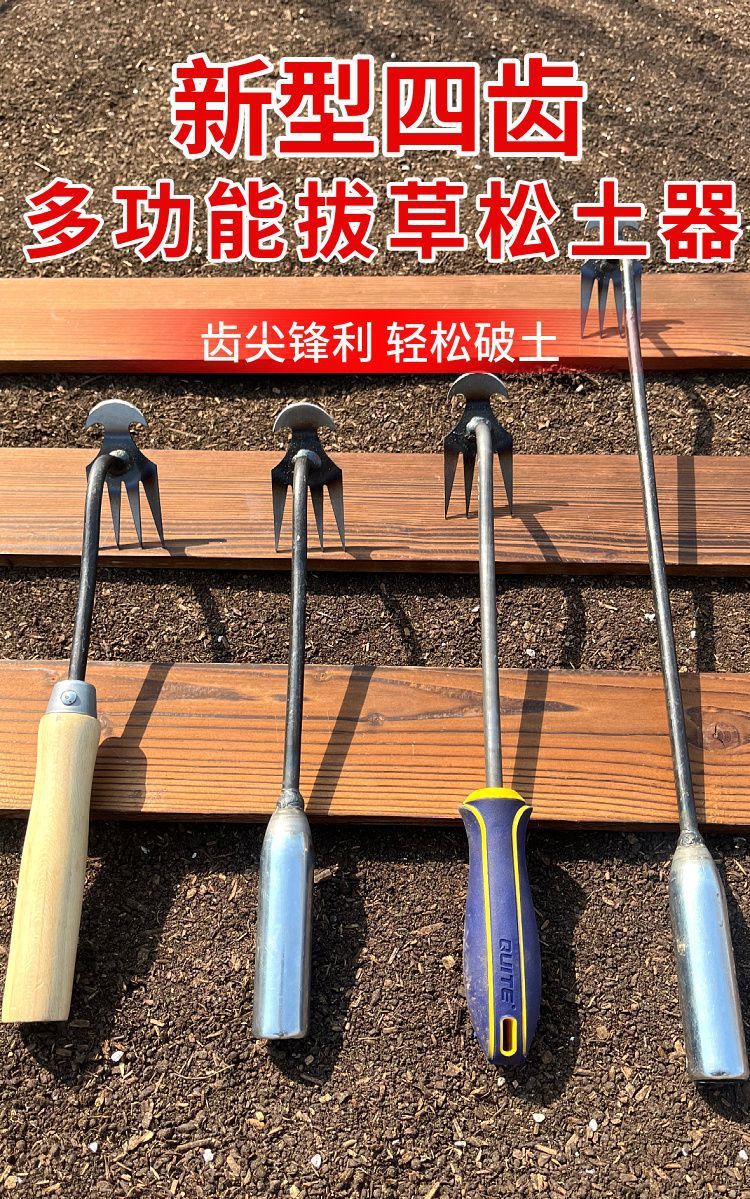 4 Зубчатый гербицид (железная ручка); 4 Зубчатый прополка двойного назначения (деревянная ручка); 4-зубчатый удлинитель (железная ручка)