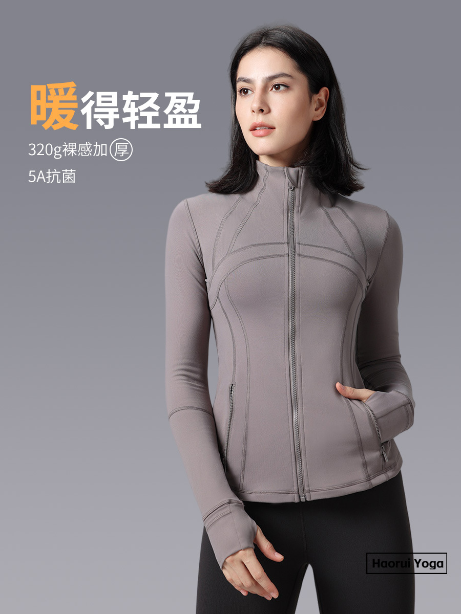 Define Костюм для йоги Куртка Весна и Осень Зимняя Йога Топ Дышащий бег Фитнес-воротник Уплотненные Спортивные Куртки