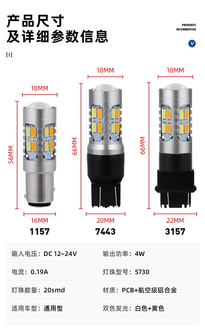 Автомобильный светодиодный двухцветный свет подсветки 1157 7443 стоп-сигнал 5730 20SMD 3157 указатель поворота дальнего света
