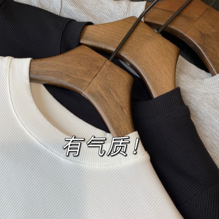 Yuan厂匹马棉冰丝坑条罗纹圆领短袖T恤~